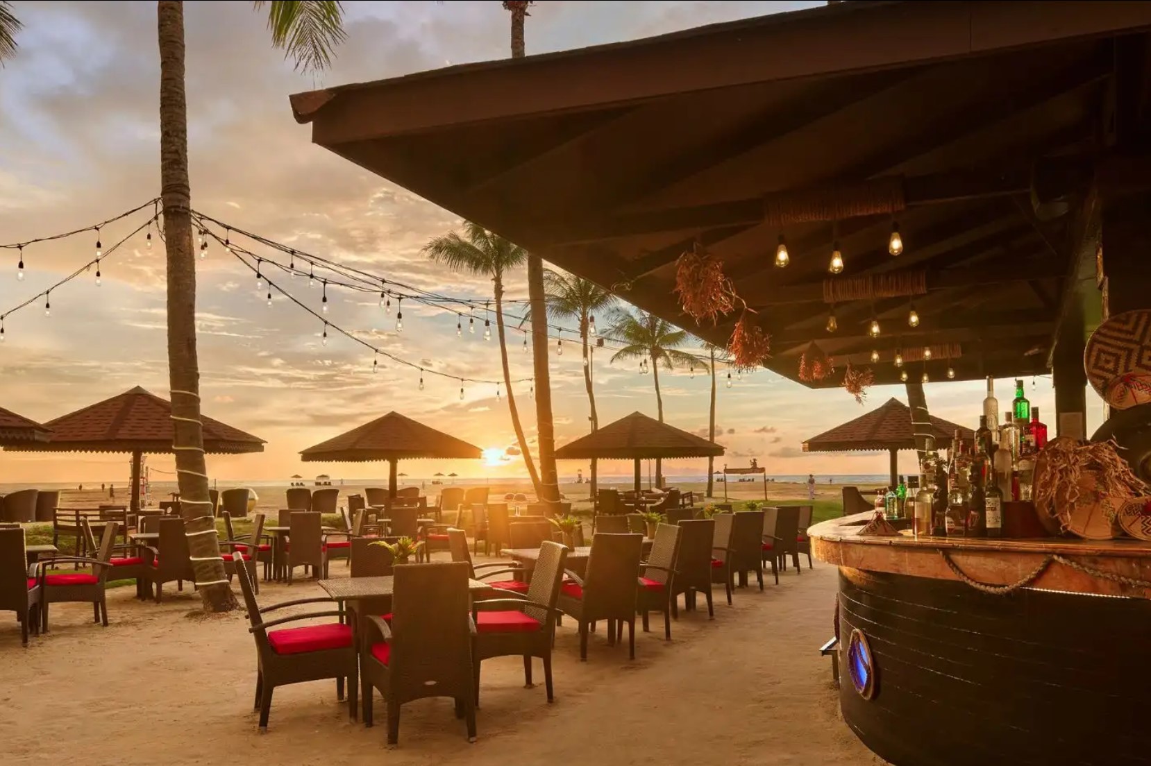 波の音をたどれば、リゾートでお食事やドリンクが楽しめるくつろぎの場所、サンパンバーにたどり着きます。ビーチのすぐそばに位置するシャングリ・ラ ラサリアのサンパンバーは、居心地の良い屋外のラウンジバーで、豊富でクリエイティブなドリンクや軽食のメニューをご用意しております。星空の下で冷たいお飲み物やサンセット カクテル、お酒をお楽しみいただける、リラックスに最適な場所です。