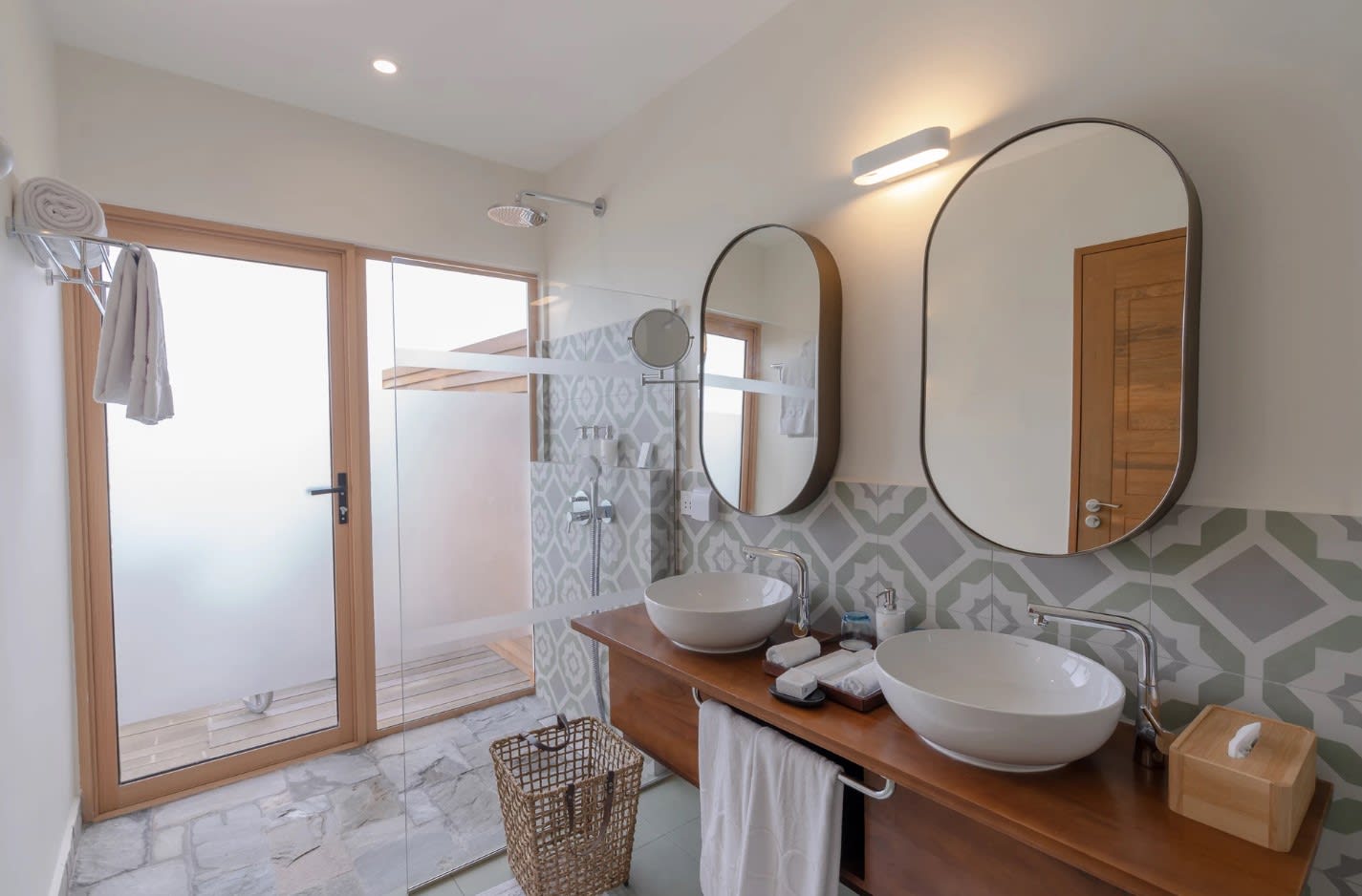 海に下りる階段も完備され、バスタブはありませんがシャワールームへ直行できるなど使い勝手の良いお部屋です。