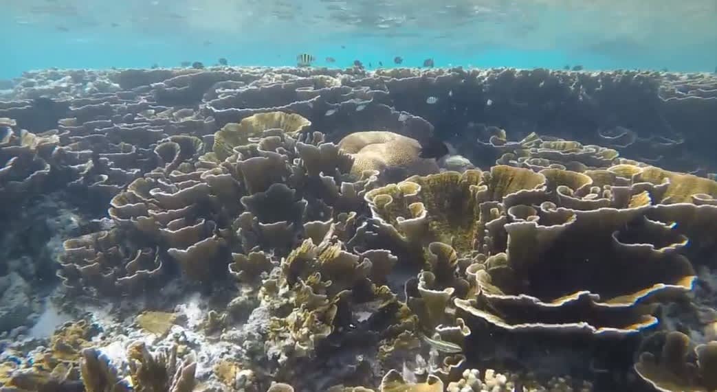 水上のラグーンヴィラからすぐの場所には、リゾートオススメのシュノーケルスポットが。