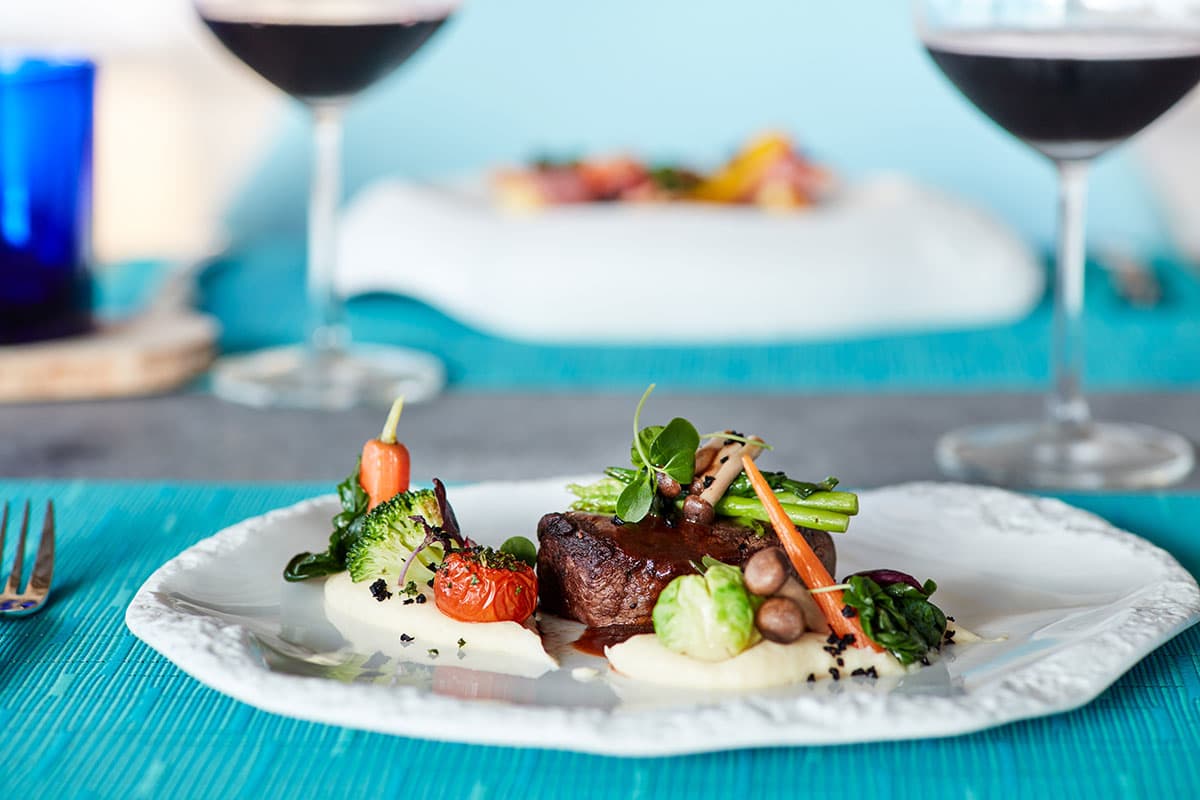 オリジナリティのある4軒のレストランに2軒のバーすべて利用できるダインアラウンド!お食事もおいしいと評判です。