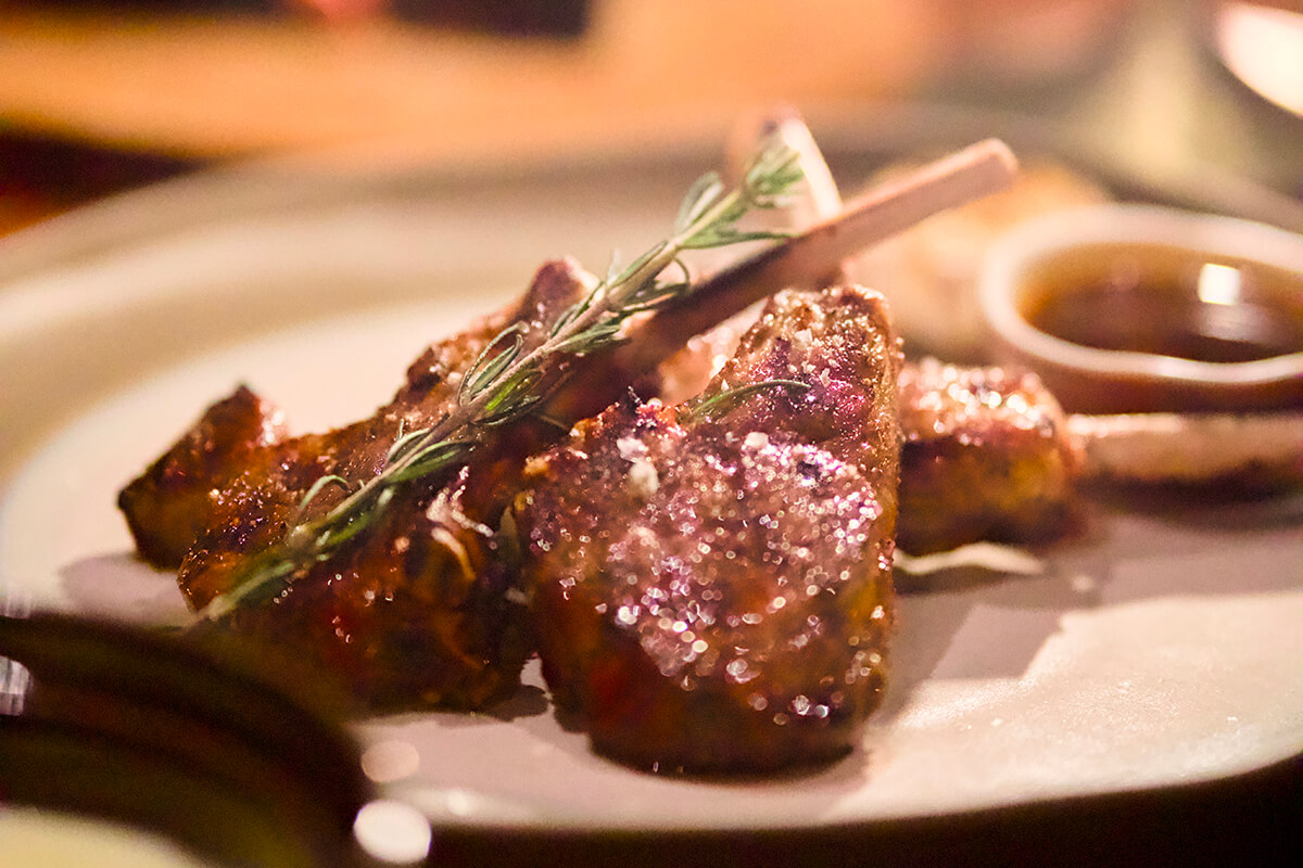 シーフードから肉料理、ワインまで、実際に炎が燃え盛る抜群の雰囲気ととも堪能できます。