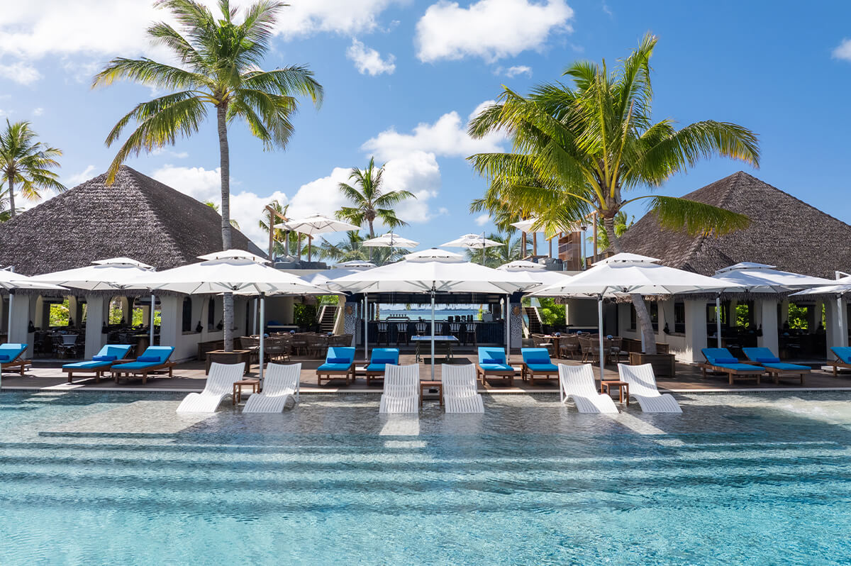 リゾートを代表するビーチクラブ&ルーフトップバー。インフィニティプールで新鮮なピザとパスタを味わいながらくつろいだり、ルーフトップバーでカクテルを片手に絶景の夕日を眺めながらのんびりとした時間を過ごせます。