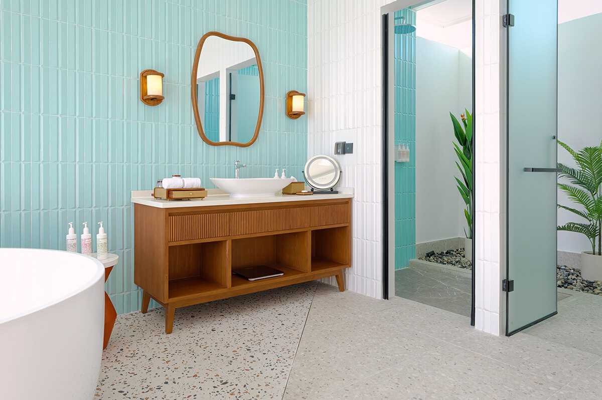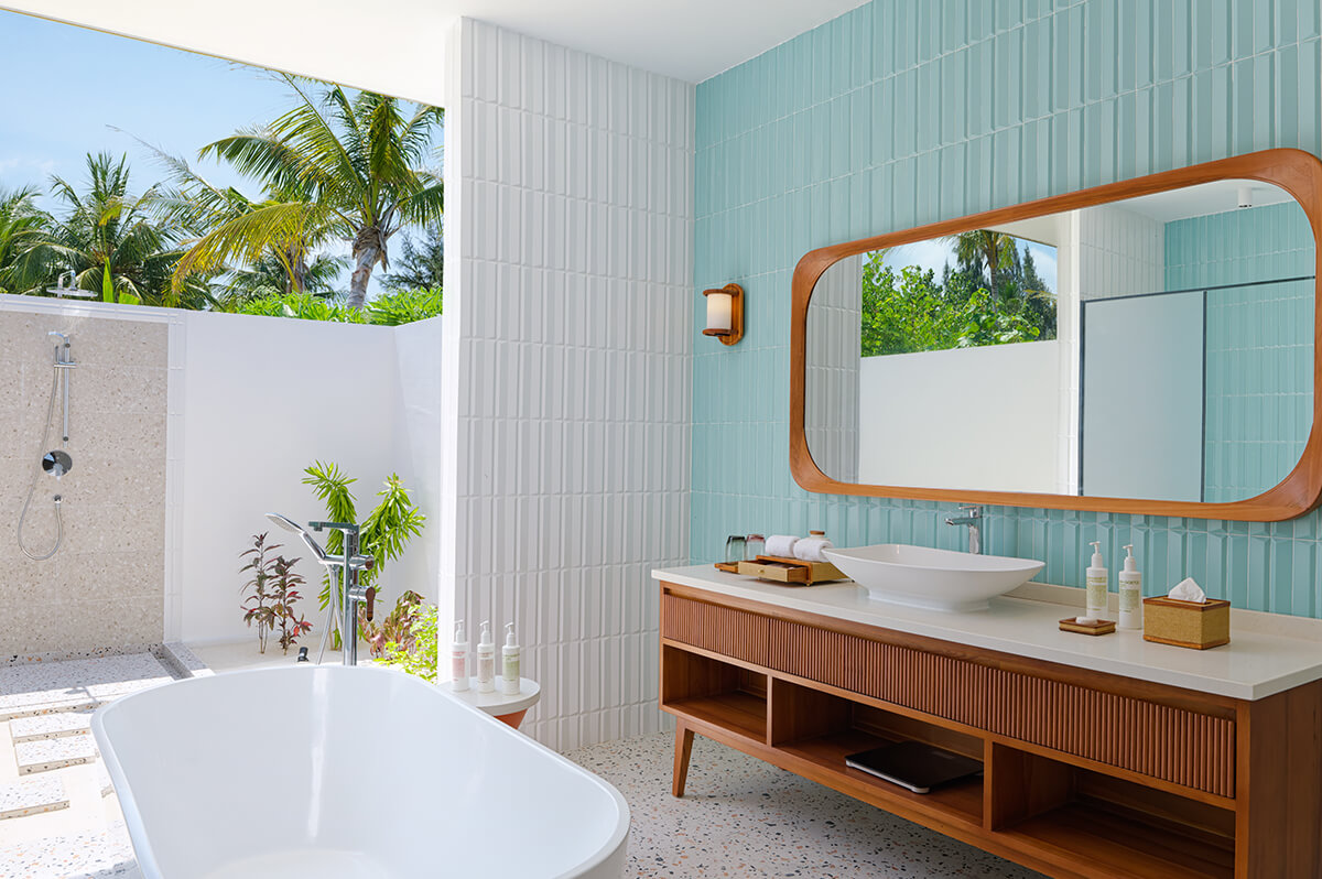 ビーチヴィラより広くなり、プライベートプールの付いた客室。オープンエアのバスタブ付きバスルームもあり、解放感も抜群!