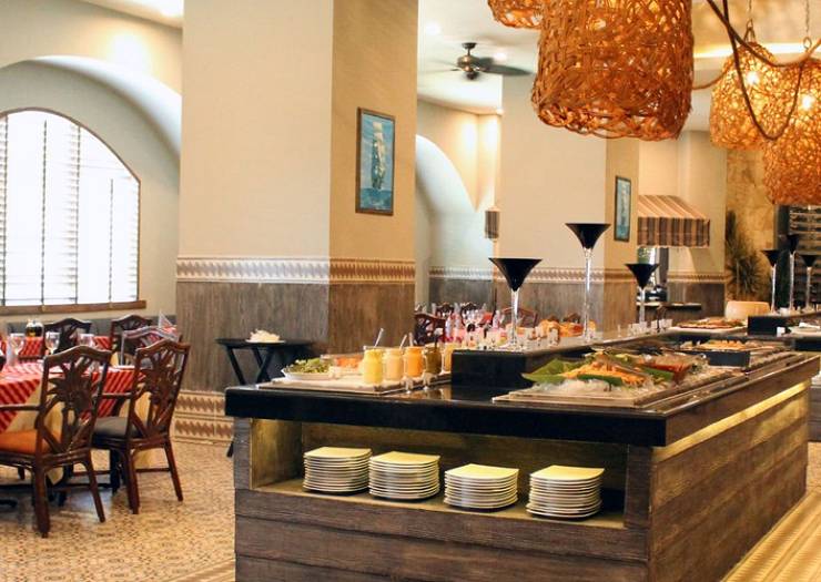 地中海の島々にインスパイアされた上品な雰囲気のレストラン。イベリコハムや世界のチーズ、創作前菜やシーフード、豊富なデザートまで多彩なメニューが魅力です。キッズ向けにサラダバーやピザ、パスタも用意。ワインセラーではロマンチックなディナー体験も可能です。