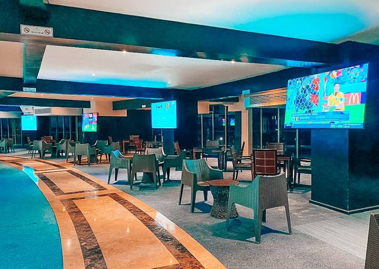 このバーは、夜のエンターテインメントに最適な当リゾートの専用バーのひとつです。カクテルを片手に心地よい音楽が流れるプレミアムな空間でお好きなスポーツ観戦をお楽しみいただけます。2階に位置し、ラグーンの絶景を眺めながら応援することができます。
