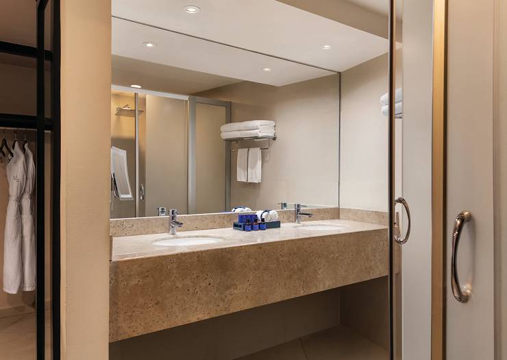 このスイートの広々としたテラスにあるバスタブでくつろぎながら、息を呑むような夕日を眺めましょう。キングサイズベッド1台またはダブルベッド2台を備え、湾と緑豊かなマヤのジャングルの美しい景色をお楽しみいただけます。