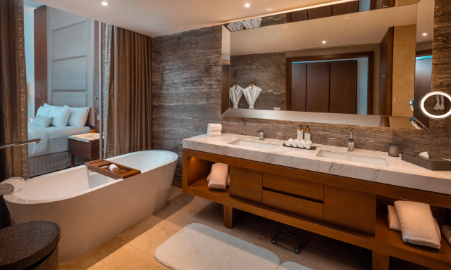 リゾート滞在中の特別なリラクゼーション体験を叶えるラグジュアリーなスパです。 オールインクルーシブに含まれるハイドロセラピーは、水の温度や流れ、ジェットの刺激で全身の緊張をほぐし、心身ともにリフレッシュできる贅沢な体験。 広々とした施術ルームではマッサージやフェイシャルなど豊富なメニューを楽しめ、自然光が差し込むラウンジやリラックスエリアでゆったり過ごすこともできます。 まるで日常から切り離されたかのような静かな空間で、体も心も贅沢に癒される至福のひとときです。