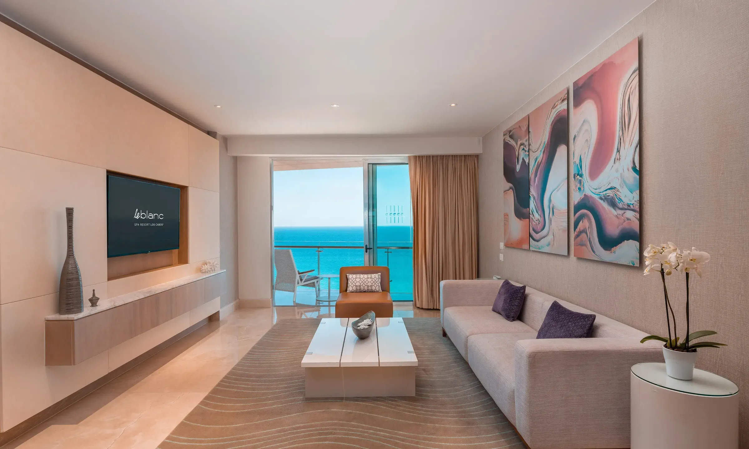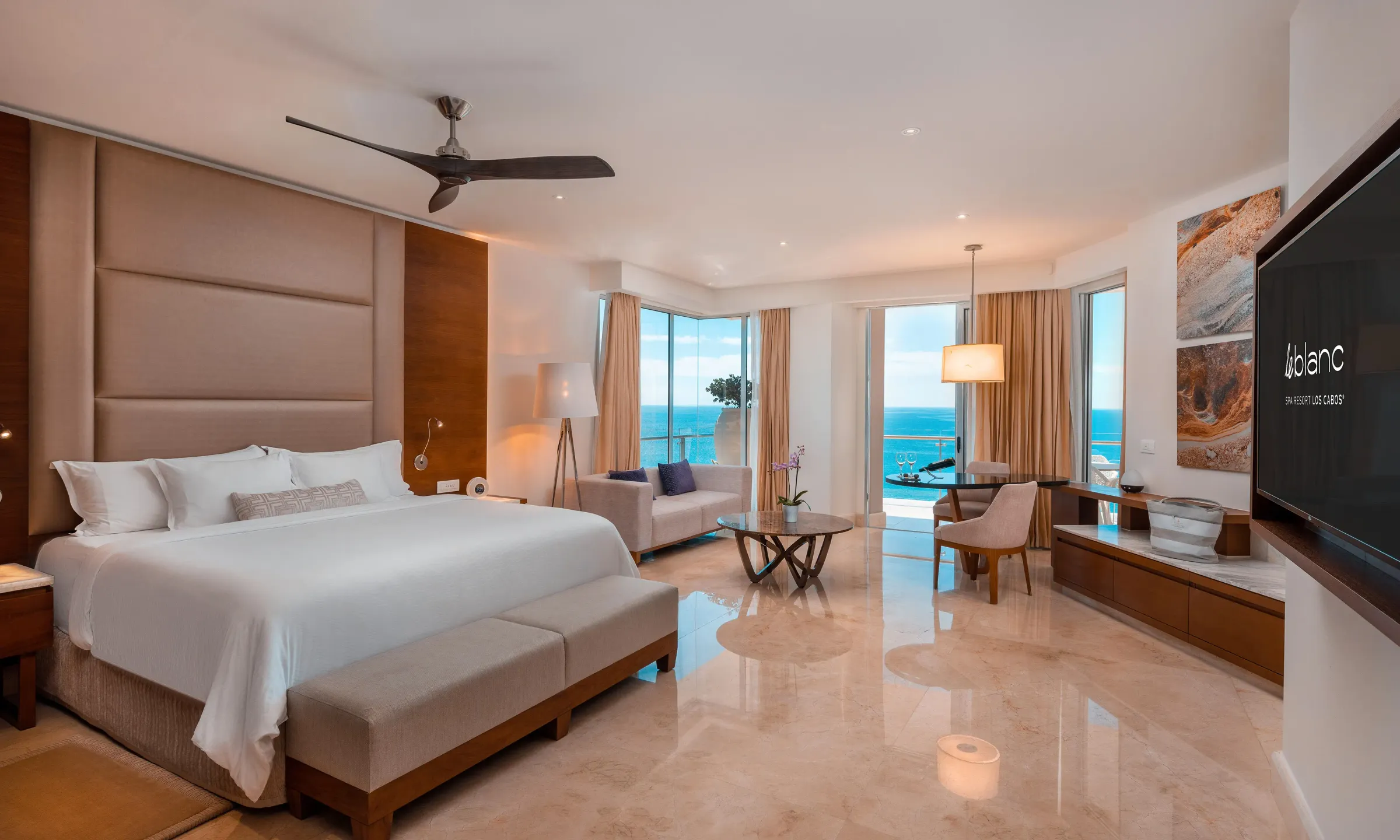 オーシャンフロントの角部屋に位置し、カリフォルニア湾の絶景を独り占めできる贅沢なスイート。