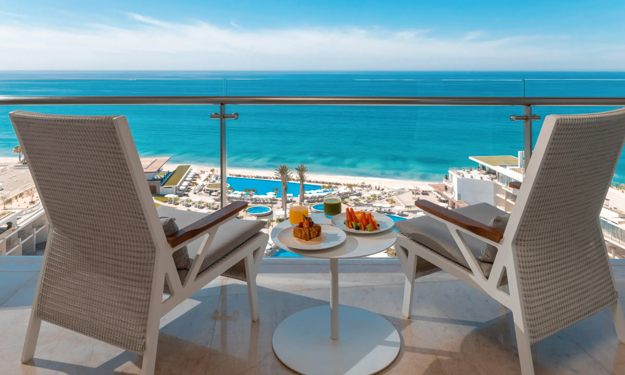 プライベートバルコニーからはカリフォルニア湾を一望でき、気軽にラグジュアリーな雰囲気を味わうことのできるお部屋です。