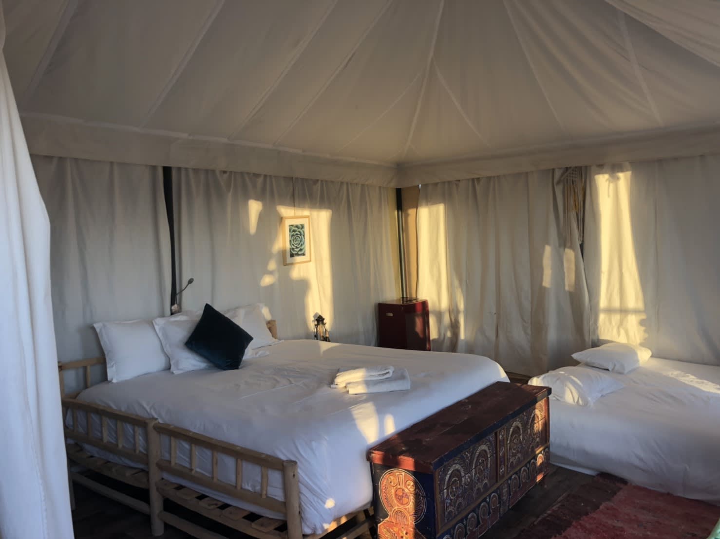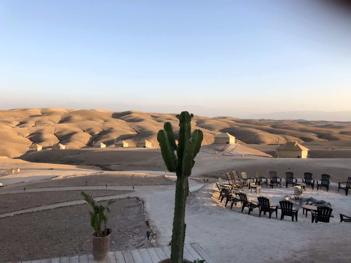 アガファイ デザート ラグジュアリー キャンプは、モロッコで外せない人気都市であるマラケシュの街の空港から、わずか30分でアクセスできるアガファイ砂漠にあるゴージャスなキャンプ施設です。アガファイ砂漠はサハラ砂漠のような砂丘の砂漠ではありませんが、都市の喧騒を抜けて時間を忘れて自然の中で過ごすことができる場所です。キャンプには18のお洒落で絵になるラグジュアリーテントが設けられ、自然の中でも不便なく滞在ができるようなおもてなしを提供しています。夕日の時間や星空を眺めながらロマンチックの時間を過ごすのにおすすめの宿泊施設です。