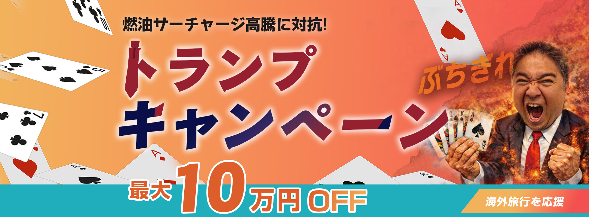 ご来店で旅行代金が大幅割引になる「ぶちぎれトランプキャンペーン」を開催します。