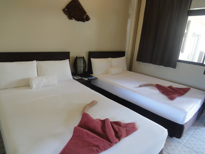 日本人経営のDWモーテル。日本人スタッフが常駐しているので、言語の面も安心です。ダイビングやオプショナルツアーをメインとしたい、豪華でなくても安全で清潔なホテルに泊まりたい、という方におすすめ。リーズナブルでありながら、町までも歩いて15分ほどなのでお買い物やお食事など街歩きにも便利◎。ホテルの共同スペースには日本の文庫や漫画も用意されており、ちょっとした空き時間もつぶすことができます。また共有キッチンも完備。調味料、お皿やコップ、フォークやスプーン等あるので、自炊も可能です。ダイビング器材の洗い場・干場、コインランドリーも完備されており、ダイバーに愛されるリゾートです。