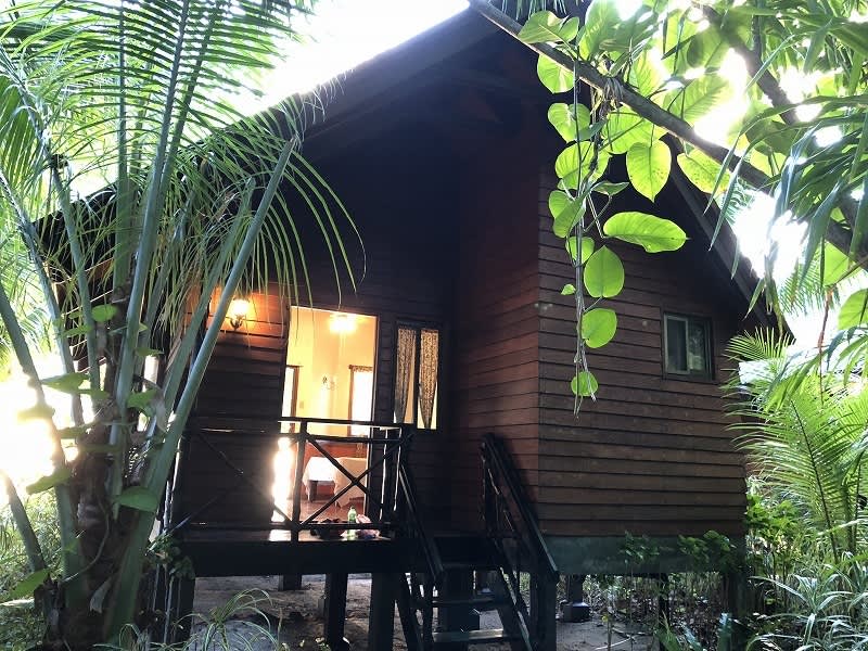 お部屋は全てバンガロータイプ。自然の素材を使って、シンプルに、トロピカルな雰囲気で、自然と調和するように、デザインされており、バンガローの周りは、南国の植物、お花、フルーツに囲まれてトロピカルムードを感じられます。 素朴な外観ですが、お部屋にはエアコンや冷蔵庫、アメニティーもそろっているので安心です。