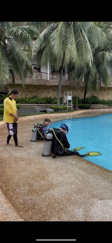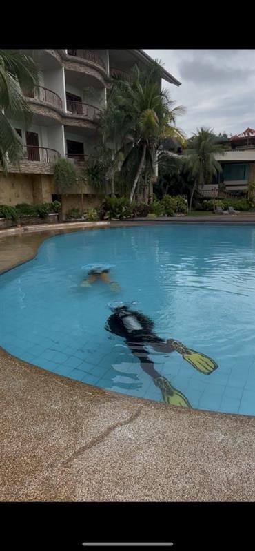 プール講習は、海に行く前に安全な環境でダイビングの基本を練習するレッスンです。