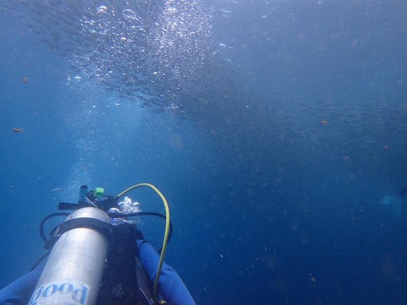 潜ってみるとあっという間に14メートルの深さに到達。