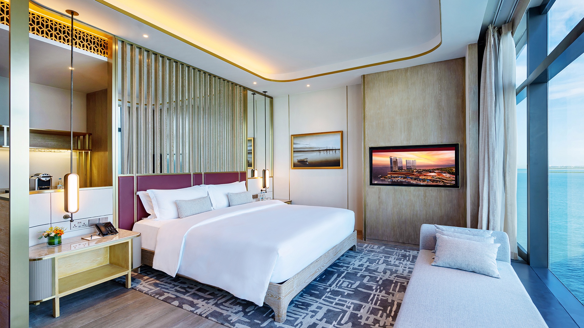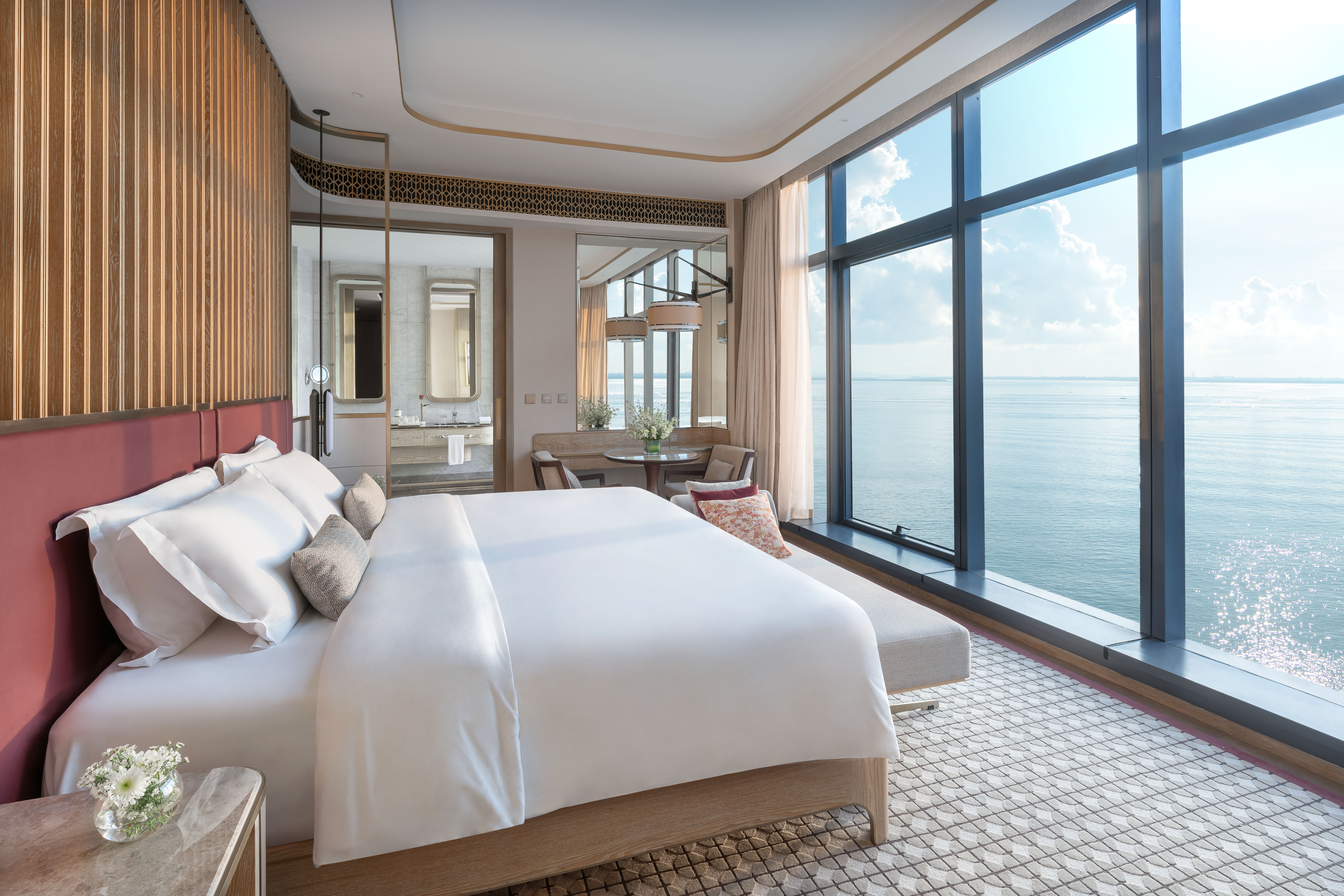 リビングとベッドルームが独立したスイートタイプの客室。大きな窓の向こうには湾が広がり、海を望む開放感あふれる特別な滞在がかないます。上質なインテリアと広々とした間取りは、長期滞在や特別なご旅行にも最適。SignatureやExecutiveとは一線を画す、よりパーソナルで洗練された空間をご体感ください。