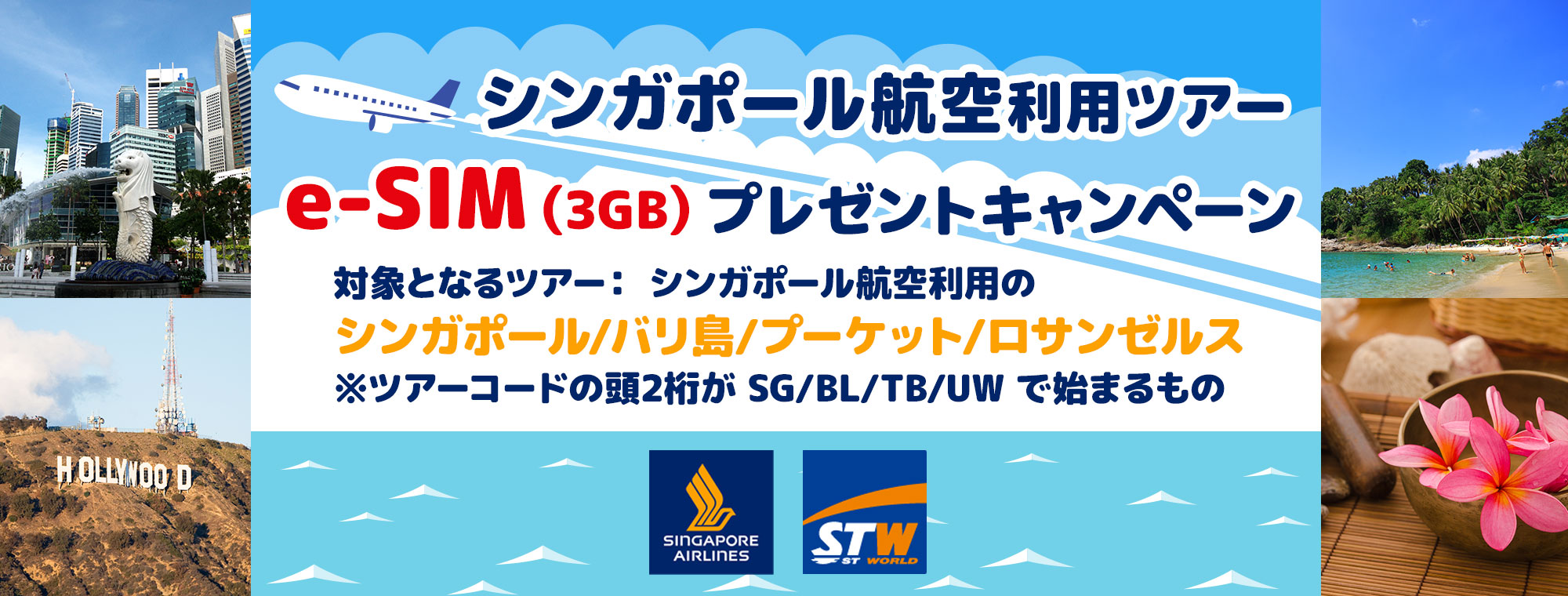 <特典内容> 現地で使えるe-SIM(3GB/5日間有効)を1回のご旅行につきお1人様1回プレゼント