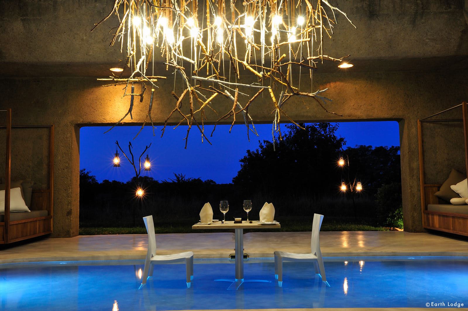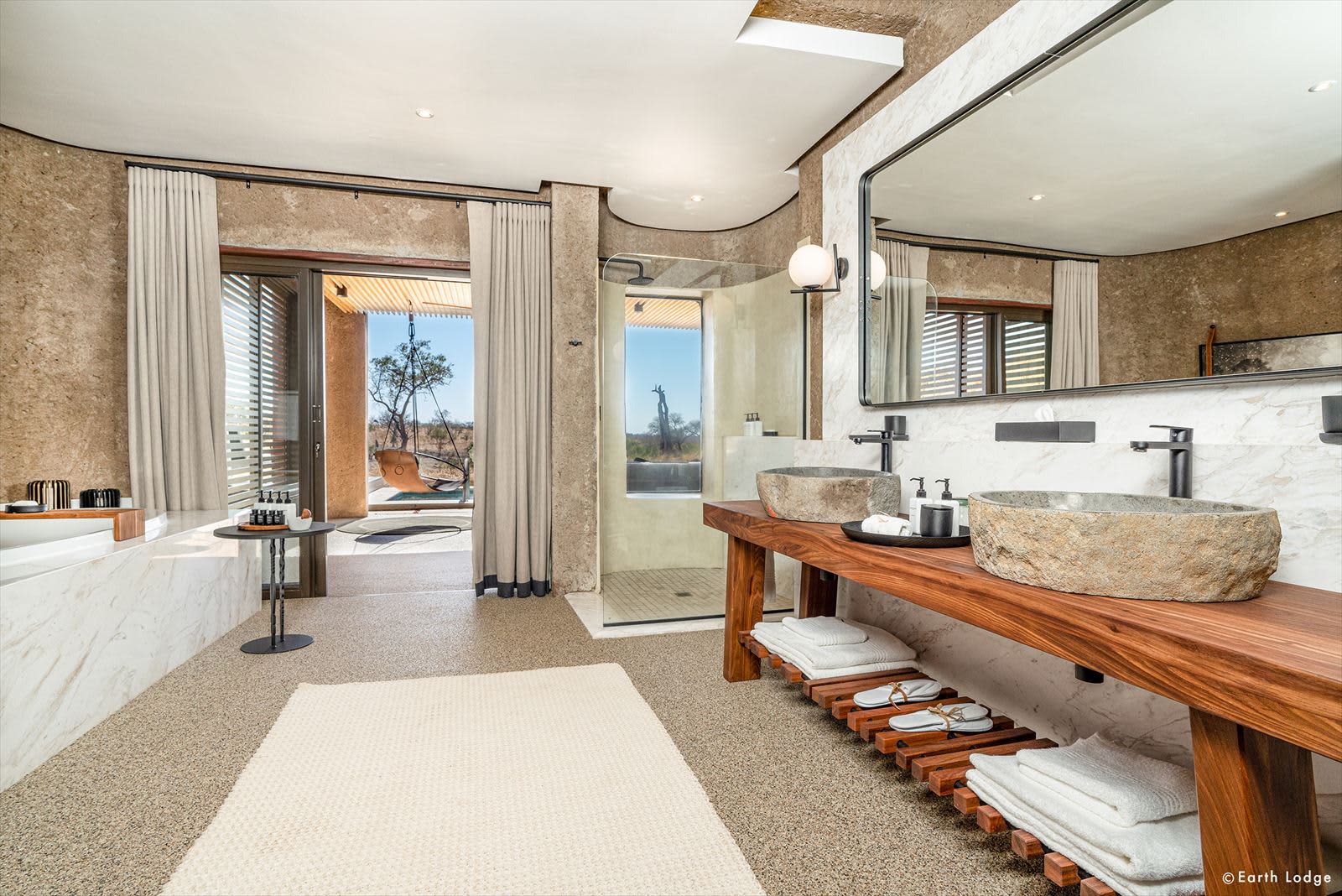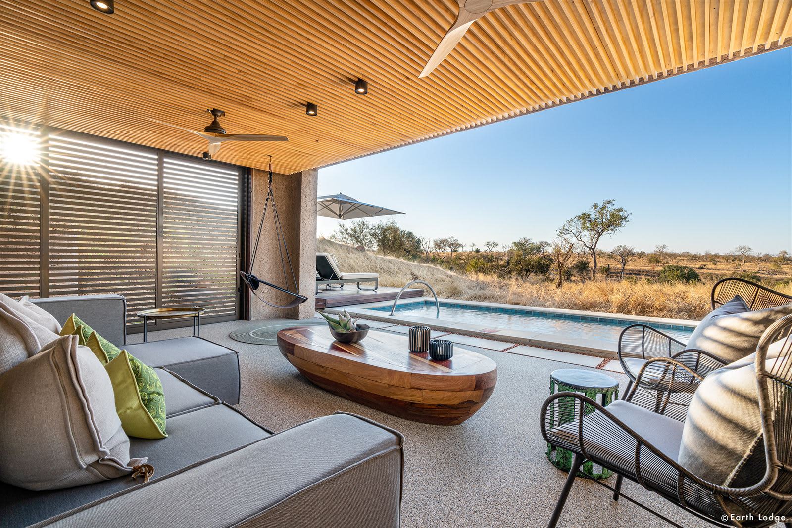 サビサビ アースロッジは、南アフリカ共和国の自然豊かなクルーガー国立公園の南西部に隣接するサビサンド私営動物保護区にあるサビサビ私営地にあるラグジュアリーロッジです。サビサンド私営動物保護区は大自然の中にありながら洗練された南アフリカの建築の粋を集めたハイグレードなロッジの集まるエリアですが、サビサビアースロッジも姉妹ロッジとともに非日常が味わえる滞在を提供しています。チャーター機の発着所があり、ゲストは専用機で到着します。プールやスパの施設もあり、サファリの合間の時間もゆったりと過ごすことができます。