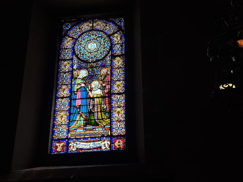 左右のステンドグラスには、イエスキリストの教えや重要なシーンが描かれています。