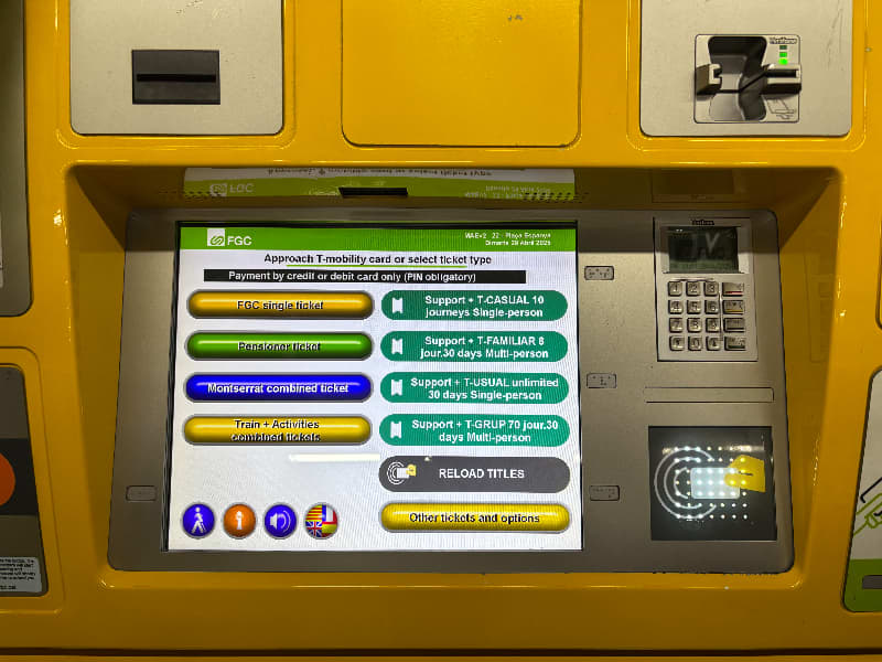 モンセラットへ向かうには、バルセロナ中心部の交通機関用とは異なるチケットが必要です。