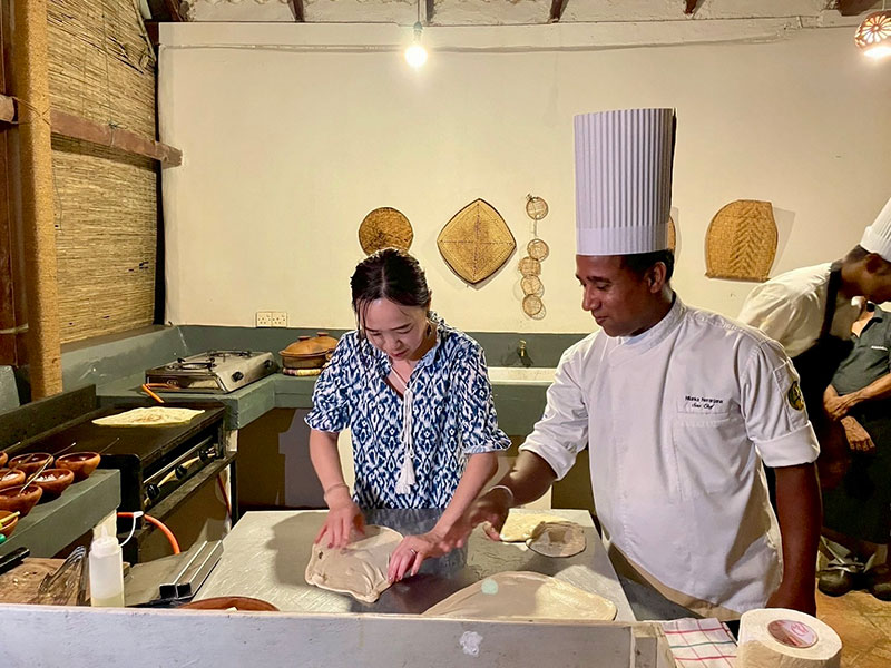 朝食では、スリランカの伝統料理ホッパー(ココナッツ風味のクレープ)に数種のカレーを添えて楽しむスタイルも。見た目は軽やかですが、満足感も十分。シェフはスリランカ出身ながら、イタリアンやメキシカンの経験もある多彩な腕前。そのため、メニューはバラエティ豊かで、滞在中飽きることがありませんでした。