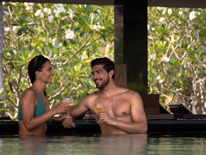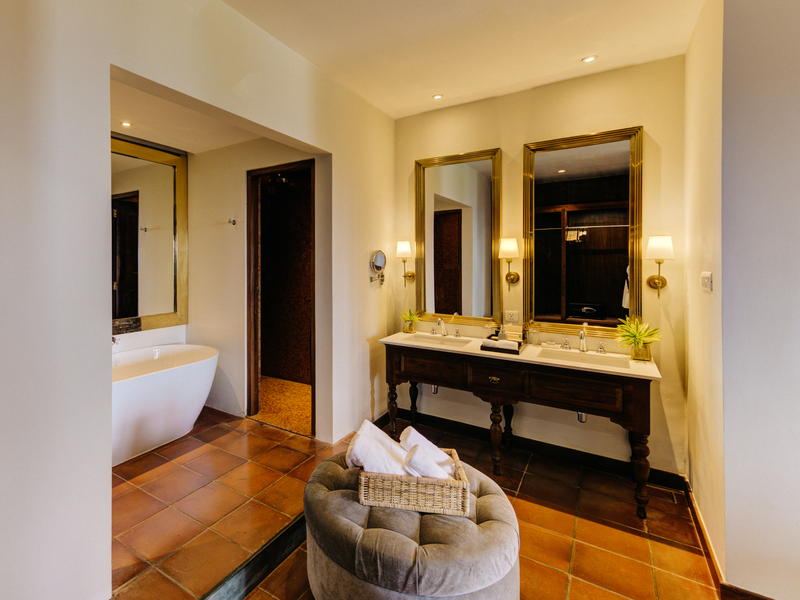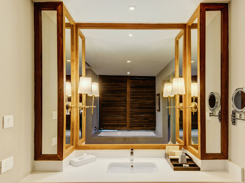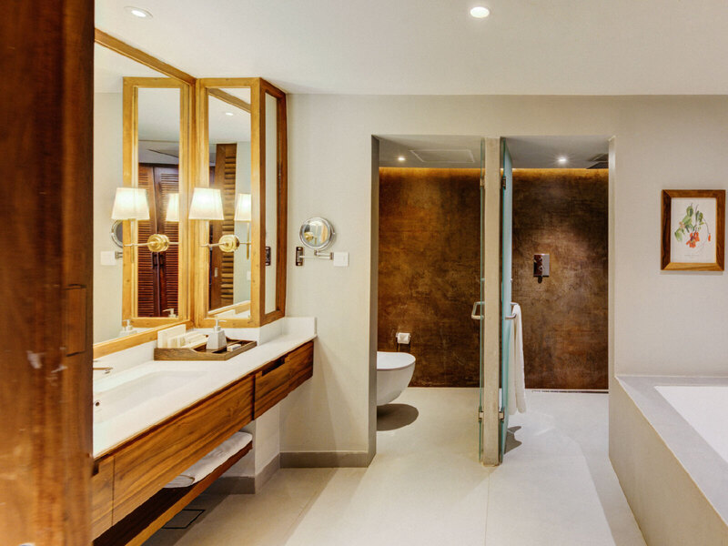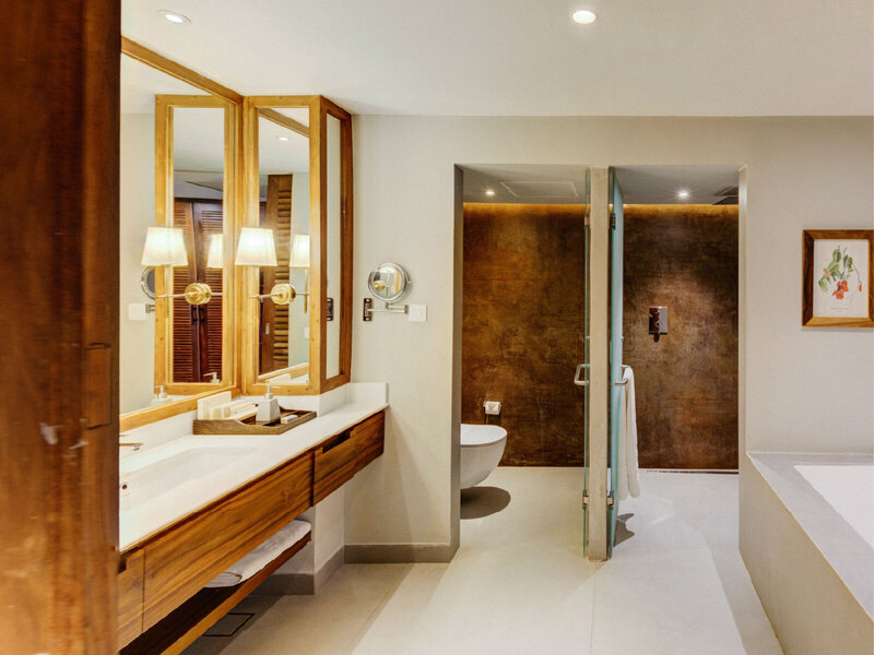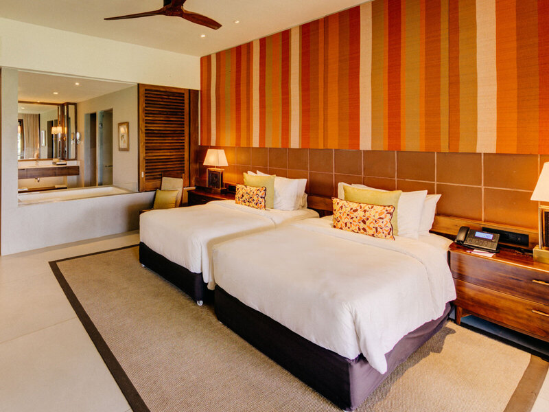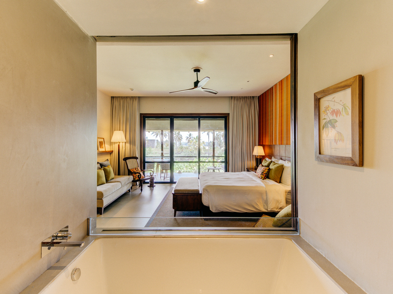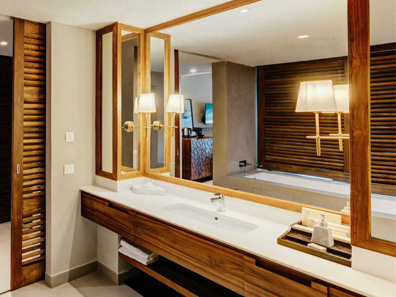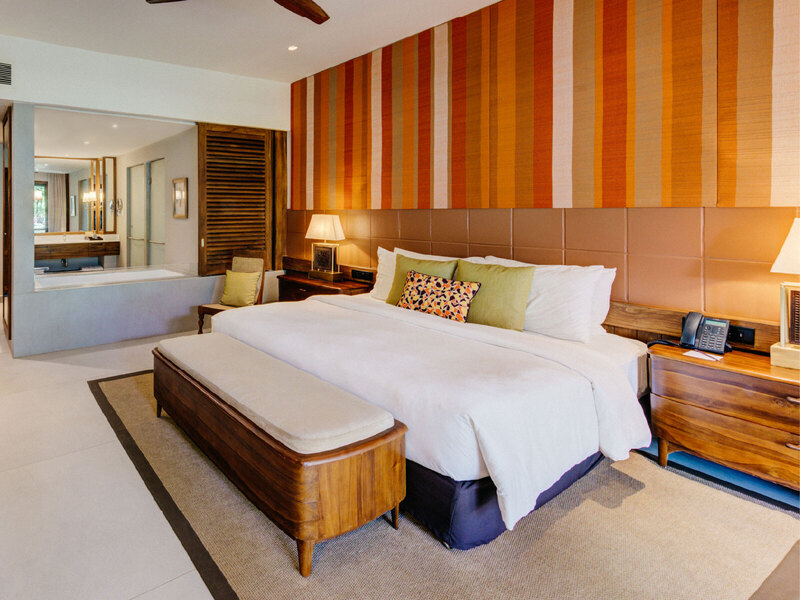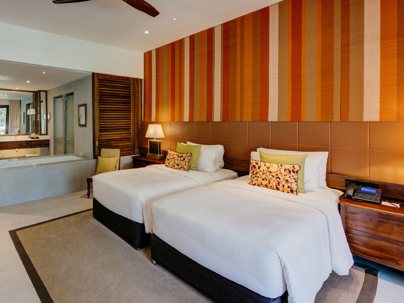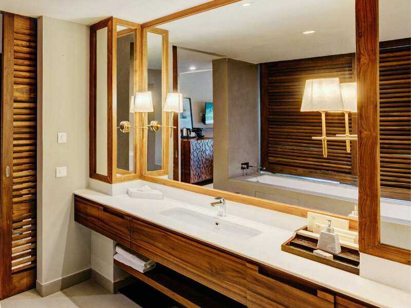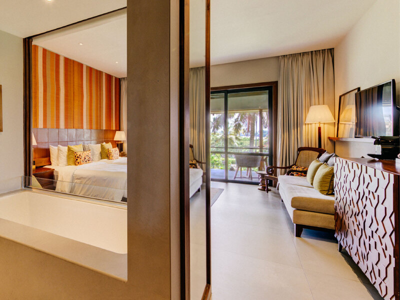 海に浸かりたい時も、専用のバスタブに浸かりたい時も、ラグジュアリーシーフロントルームなら両方をお楽しみいただけます。ベッドに寝転がりながら、波の音や揺れるココナッツの木々を眺めてみませんか。