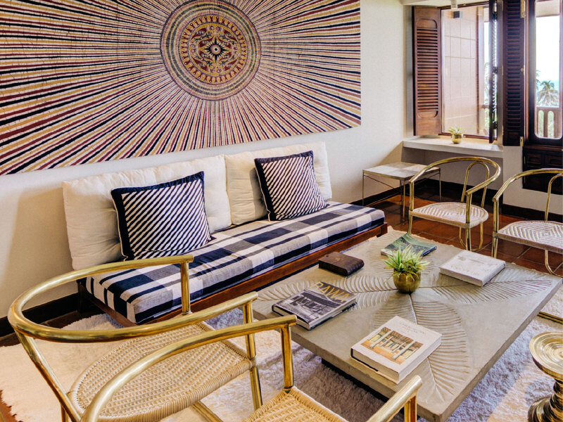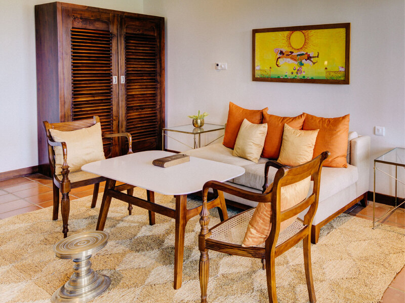 「長いつるをもつ花と実をもつもの」という意味をもつナリケラ。南海岸を象徴するヤシの木が、このスイートのインスピレーション源です。アーティストのマリー・グナナラージと写真家ドミニク・サンソニによる作品が空間を彩り、ココナッツファイバーを編み込んだアートや写真作品がスイート内に展示されています。