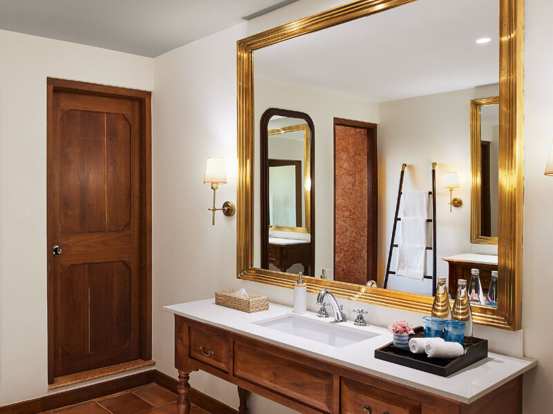 かつてスリランカの真珠は世界的に知られ、「インド洋の真珠」と称されるほどの美しさを誇っていました。こちらのスイートは、スリランカの象徴でもある「真珠」をテーマに、文字通りそして比喩的な意味でも島の宝を祝福しています。リビングエリアには、真珠の解釈を描いたメインアートが飾られています。ベッド背面の「ヴェリカンダ・ブラック&ホワイト」は、地形を抽象的に表現した作品で、このホテルのために特別に織られたものです。このスイートもまた、すべてのアートワークがスリランカ国内の素材と職人技によるものです。