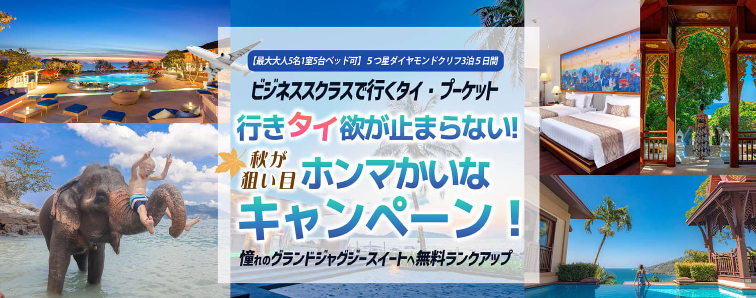 STW本気の秋の目利きツアー!ビジネスクラスで行く優雅なプーケット<最大5名1室が可能な>ジャグジースイート指定│5つ星ダイヤモンドクリフ5日間●ビーチでゾウさんと記念撮影特典付●