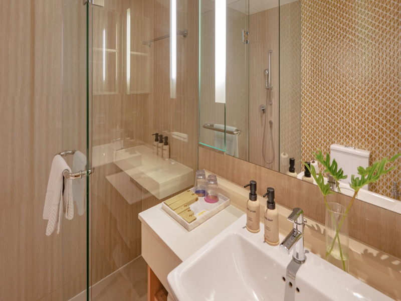 バスルームにはバスタブも完備しており、アクティブに過ごした1日の終わりにリラックスできる環境が整っています。