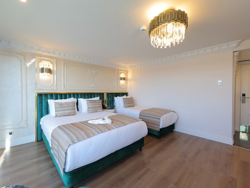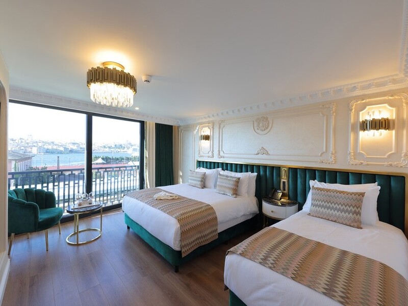 キングサイズベッド1台(160 x 190 cm)とシングルベッド1台(90×190 cm)、またはシングルベッド3台(各90 x 190 cm)からお選びいただけます。先ほどのトリプルルームと同じ設備ながら、ボスポラス海峡の眺めを楽しむことができるお部屋です。複数人でのご滞在でかつボスポラス海峡の眺めをご希望の方は、こちらのお部屋をお選びくださいませ。