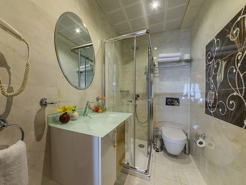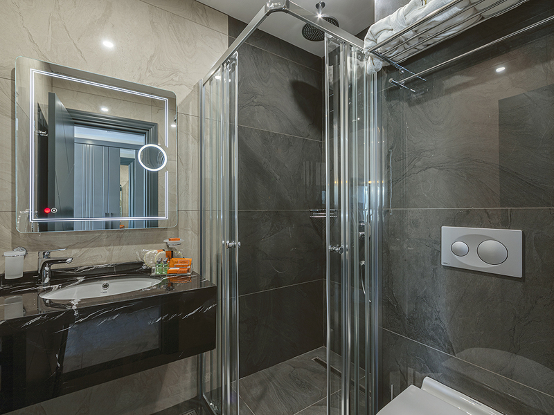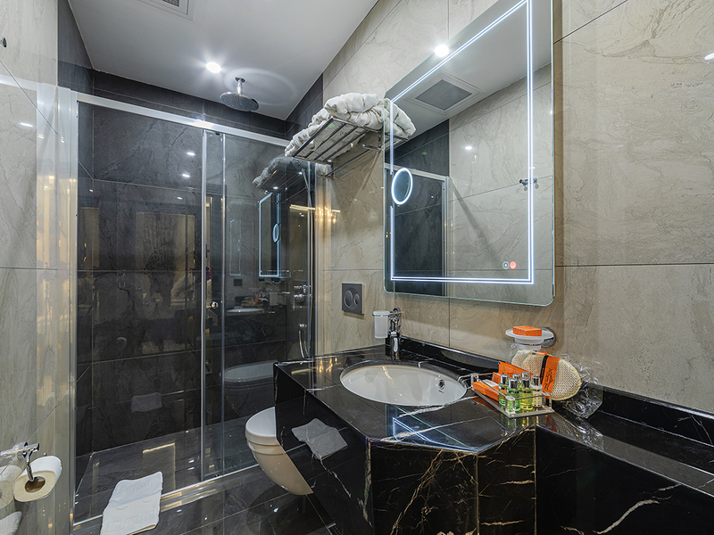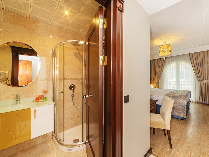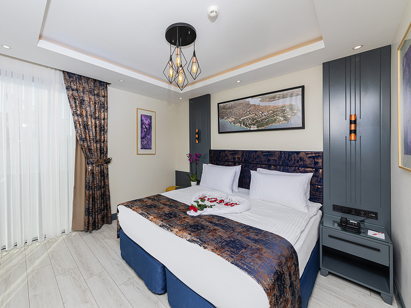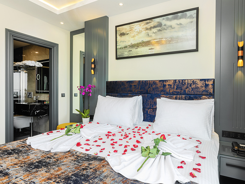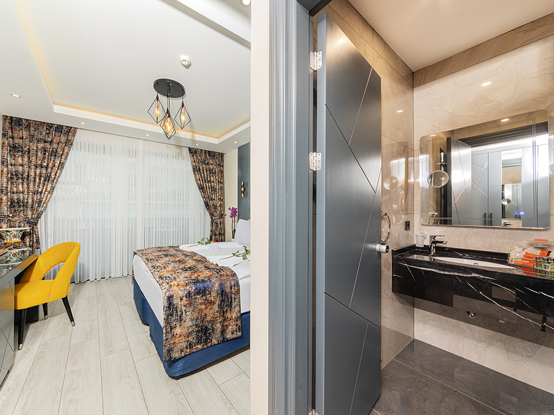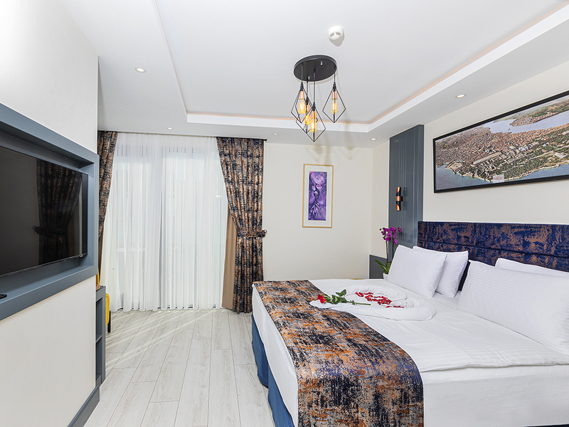 ダブルベッド 1 台またはシングルベッド 2 台のお部屋です。マルマラ海の眺めが広がるデラックスルームは、専用バルコニーから差し込む自然光に包まれています。デスクには調度品が置かれ、異国情緒を一層高めてくれます。
