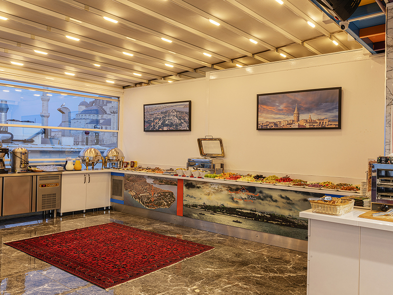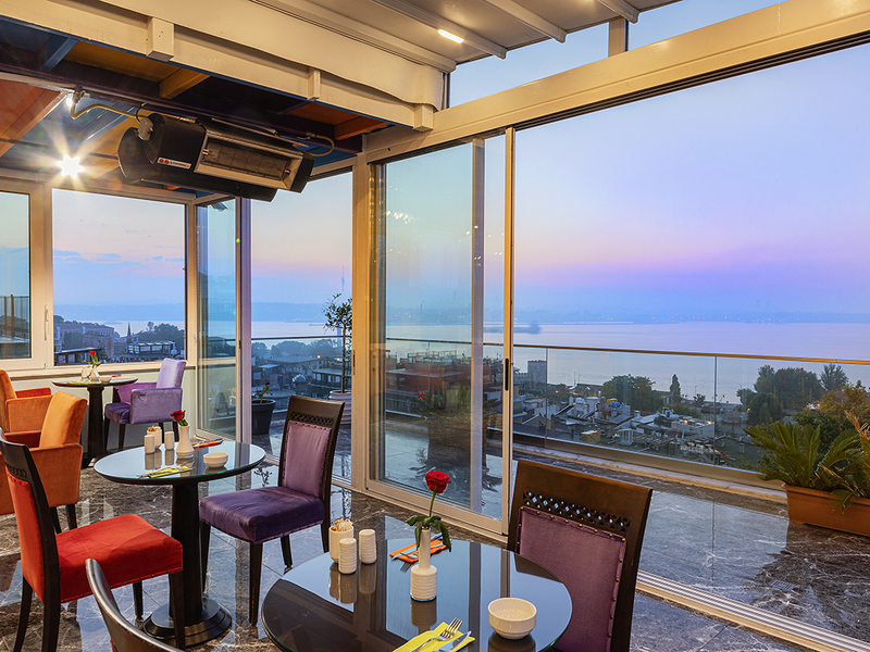 ご宿泊の際に朝食会場となるのはこちらのレストラン。冒頭の魅力ポイントでもお伝えした通り、この絶景がなんといってもザ マグナウラ パレス一番の自慢といえるでしょう!朝焼けとともに動き出すイスタンブールの町と、朝日に照らされるモスクの絶景を背に食べる朝食は…。想像しただけでたまらないですね!
