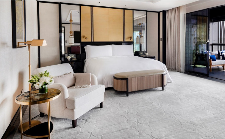 重厚な黒漆の扉、丸みを帯びた角、豪華なタイ・ピンのラグ、ウォークインクローゼット、柔らかなタッチの引き出し、そして吹き付ける風を感じさせない静かな空調。部屋の中には、イスタンブールを彷彿とさせる細やかなデザインもあります。たとえば、ミネラルブルーのラグに織り込まれたヒヤシンスのモチーフや、光沢ある黒いデスクに輝く真珠母の立方体、重厚な鉛灰色のダマスクカーテンには繊細な刺繍が施されています。ほとんどの部屋からはボスポラス海峡の美しい景色が広がり、一部にはテラスや庭も完備。華やか且つ快適にお過ごしいただけることでしょう。