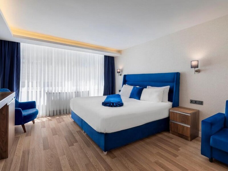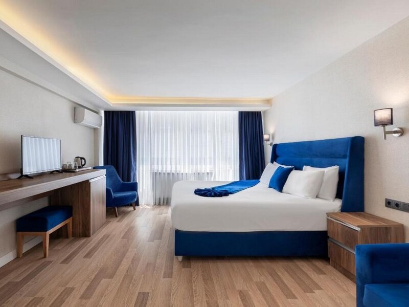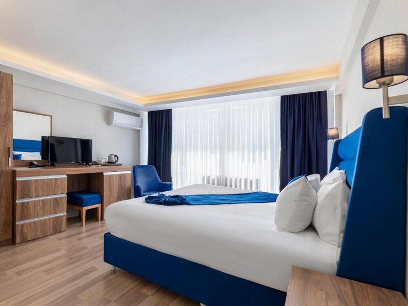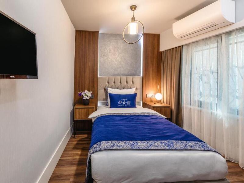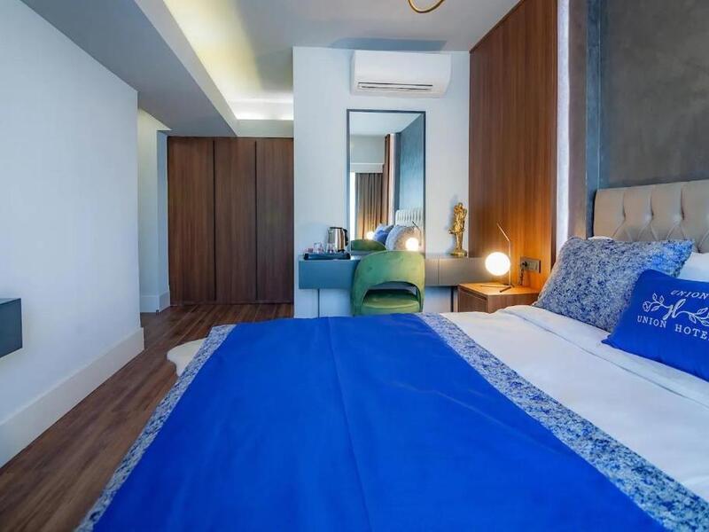 カバタシュ港・カバタシュ駅から徒歩10分ほどの場所に位置する、Union Hotel Port。その名の通り港からすぐの立地で、目の前にはボスポラス海峡が広がります。メイン地区の一つであるカラキョイ駅からトラムやバスを利用し数駅でアクセス可能なのもうれしいポイント。お部屋のベッドは白とロイヤルブルーでまとめられたかわいいデザインとなっております。