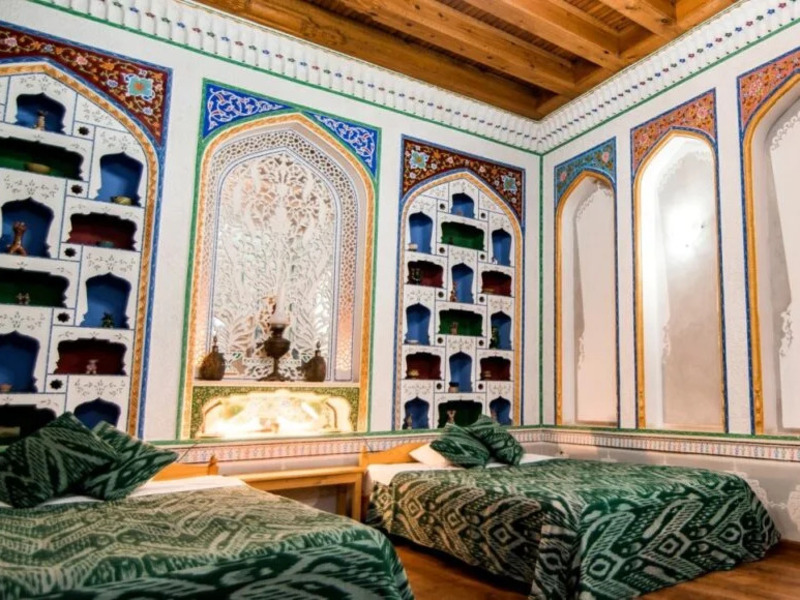 貿易商人の家をリノベーションし作られたブティックホテルです。こじんまりとしアットホームな雰囲気で、どこか懐かしさを覚えます。ウズベキスタンの伝統等的なカラフルな装飾が施され、宮殿のような可愛い雰囲気が女性のお客様に大人気。お部屋ごとに壁紙や内装が異なり、どの部屋もお姫様のお部屋のよう。心地よい風が吹き抜ける中庭では、観光の疲れも癒されます。ウズベキスタンに来たならば、一度は泊まってみたいホテルです。観光がメインなウズベキスタンですが、1日はホテルでゆっくりウズベクを感じてみてはいかがでしょうか。