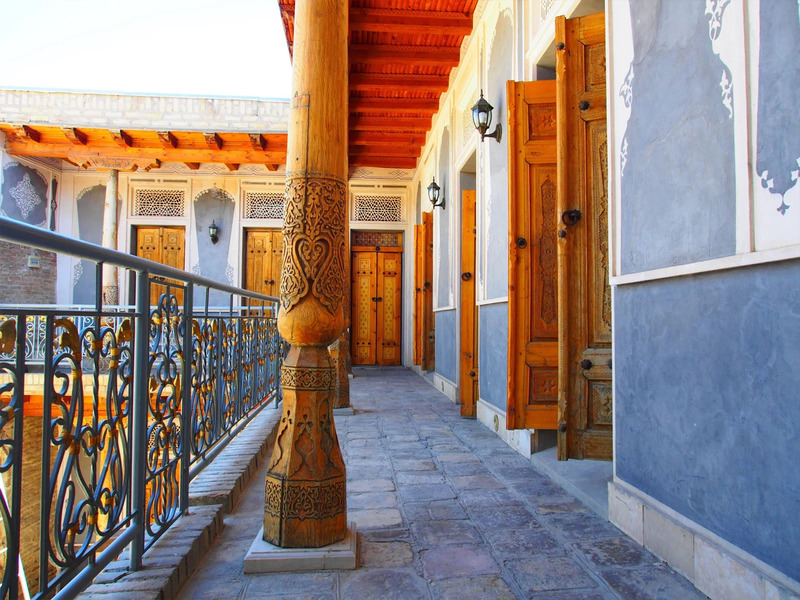 僧院をリノベーションして生まれた、こぢんまりとしたブティックホテルです。アットホームで温かみのある空間は、どこか懐かしくほっとする雰囲気。館内にはウズベキスタンらしいカラフルな装飾が施されていて、まるで宮殿のような可愛らしさが広がります。風が心地よく通り抜ける中庭では、観光の合間にゆったりとくつろげます。
