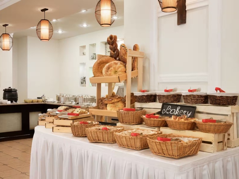 朝食ではパンが種類豊富に用意されており、ウズベキスタンの主食でもある「ナン」というパイのような丸い形をしたパンも食べることができます。大きなサイズで提供されているので、切り分けるか、大胆にかぶりついてもいいかもしれませんね♪