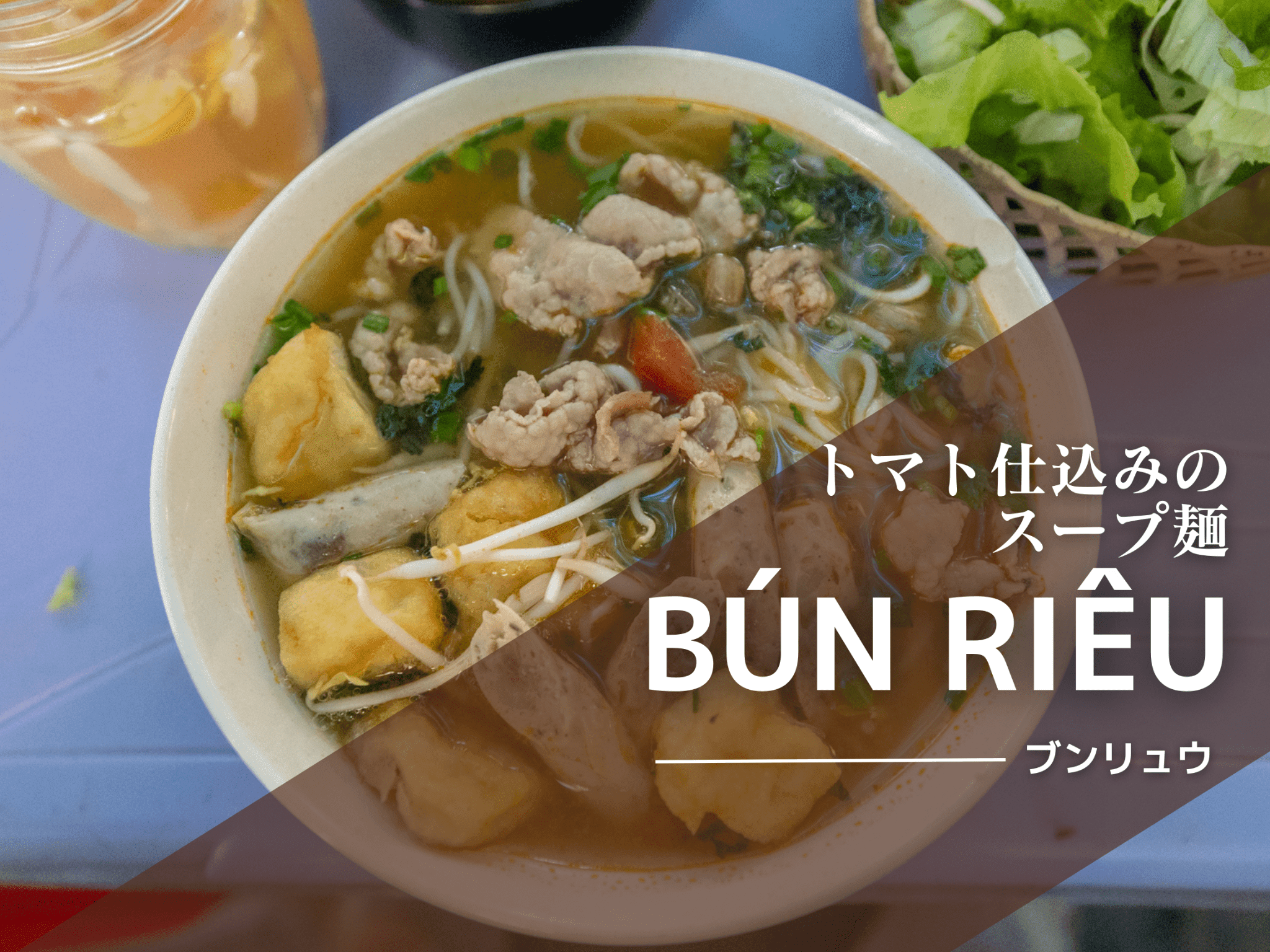 ブンリュウ(ベトナム語よりで発音するならブンジウ)は、トマトベースのスープにブン、さらにお肉やソーセージ、揚げ豆腐などを入れた麺料理です。トマトのコクが感じられる優しいスープはフォーと比べても食べやすく、さらには地域によってカニ肉を加えたブンジウクアなどは大衆に人気の料理となっています。