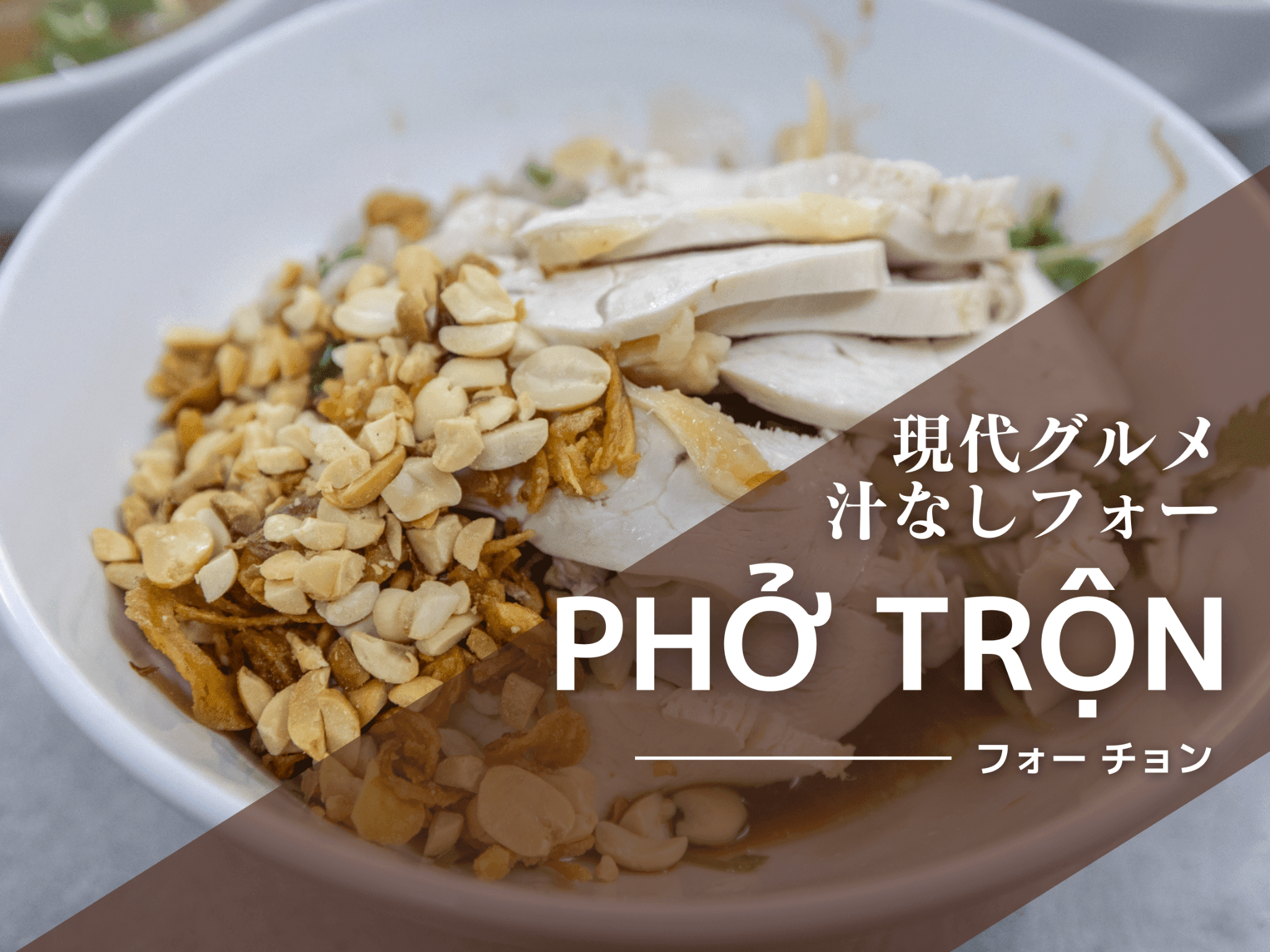 フォーチョンは汁なしフォー。スープではなくそのままフォーをボールに入れて、上からレタスなどの野菜や肉、ナッツをのせて味付けは醬油ベースになっている店が多いので、若干甘めのベトナム醤油が組み合わさって日本人にもなじみやすい味となっています。フォーチョンの歴史はまだ浅く、いわゆる現代グルメなので若者を中心に人気があります。フォーチョンのほかに汁なしブンのブンチョンや、春雨のミエンチョンなどもあります。