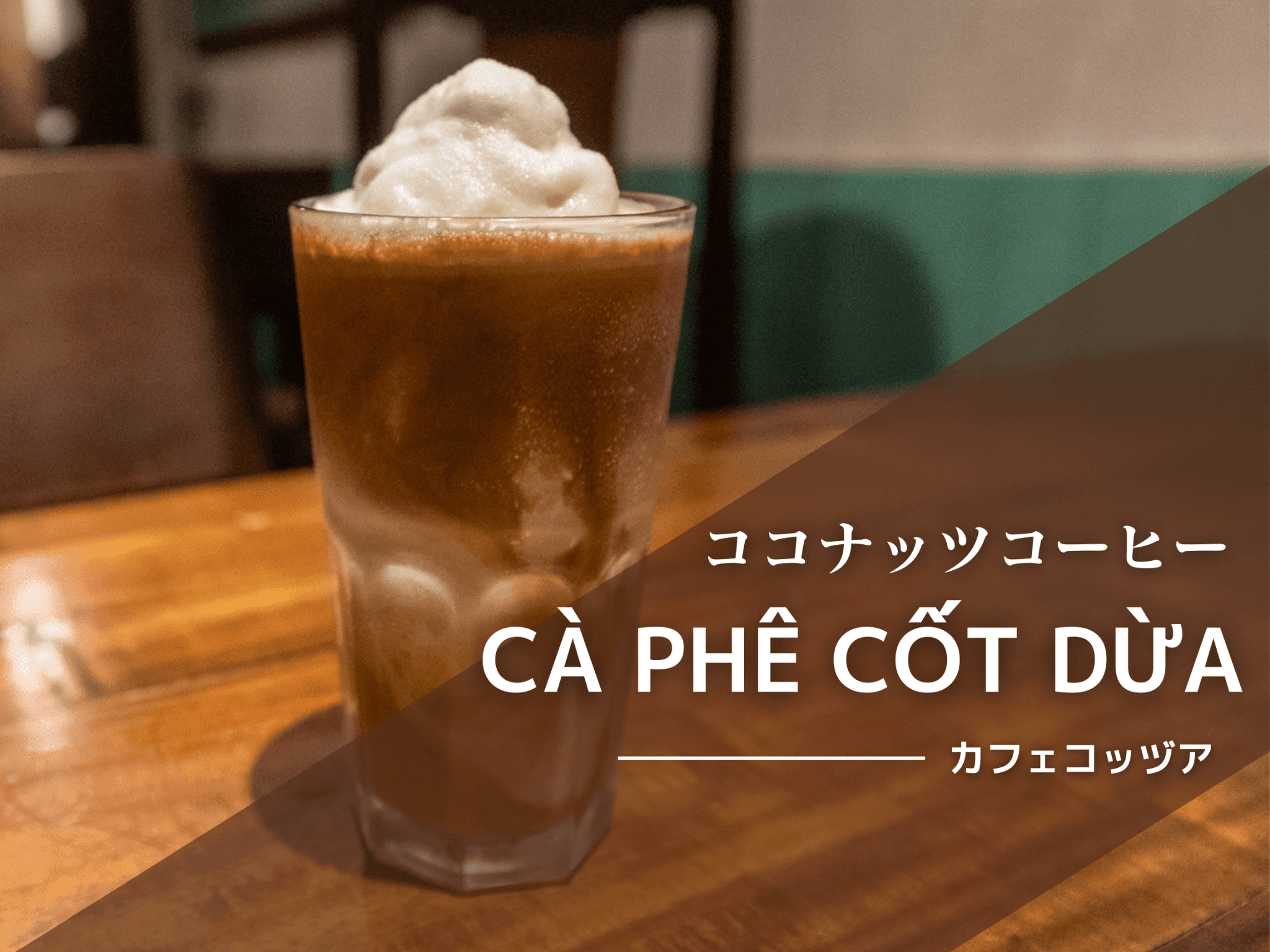 ベトナムコーヒー+ココナッツミルクの組み合わせ。シンプルにコーヒーとミルクを混ぜたものもありますが、ココナッツミルクに氷を加えてミキサーして、フローズン調でいただくのが一般的なスタイルとなっています。
