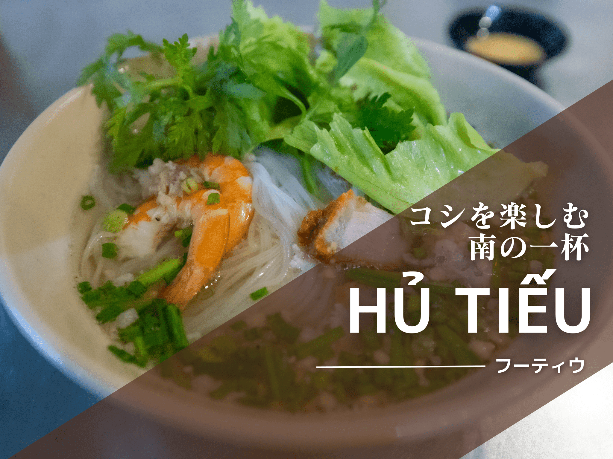 タピオカ粉由来の太麺はフォーやブンとはまた違った味わい!ツルっといただける独特な麺と決め手はスープになります。お店によっても麺はタピオカ粉と米粉の割合が違ったり、スープも様々なベースと味、胡椒などのスパイスがあるので個性が出ますが、南部の料理なのでハノイで食べるよりホーチミンで食べた方が確実においしく選択肢も増えます。