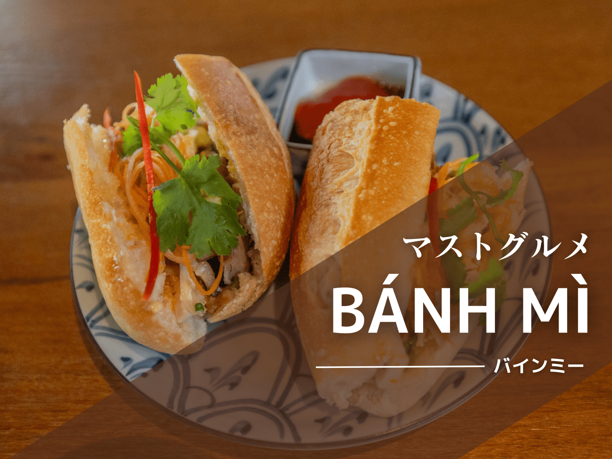 バインミーは誰もが知るベトナムグルメの定番。お肉やレバーペーストのパテ、野菜を焼き立てのフランスパンにはさんで楽しむベトナムサンドイッチです。ベトナム全国どこにでも路上屋台やバインミー屋さんがあり、気軽にお楽しみいただけます。