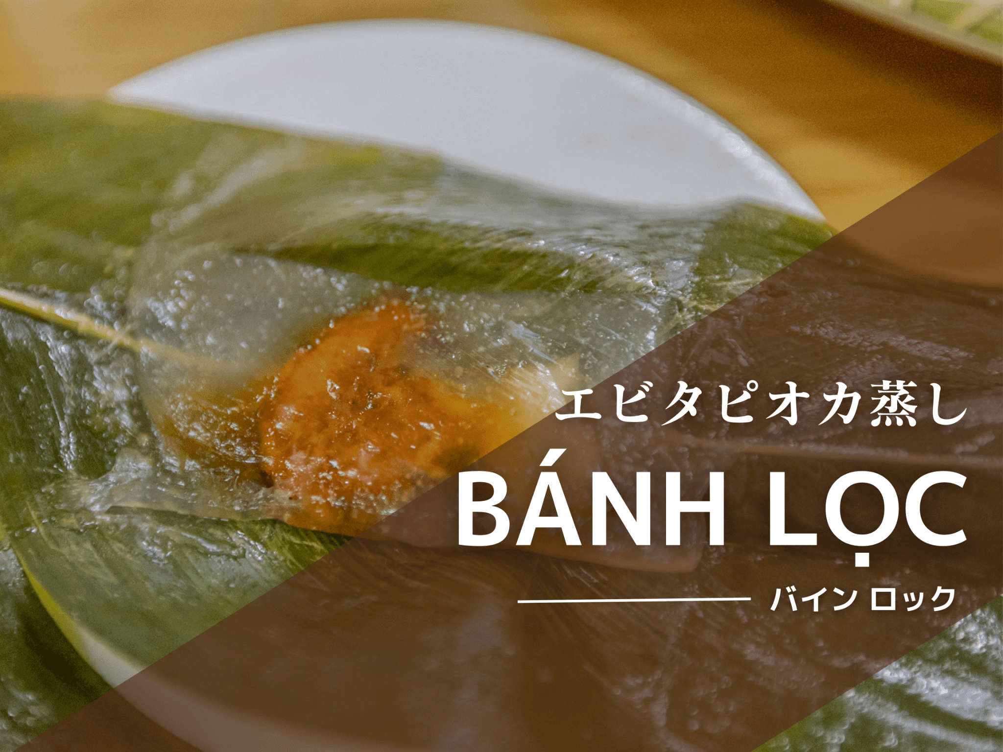 バインロックは透明感のあるもちもちのタピオカ生地にエビを入れたタピオカ餃子。ベトナム中部フエの代表料理で、バナナの葉などで丁寧に一つ一つ包んで蒸した絶品です。一口サイズで食べやすく、味と食感を楽しみながらついつい手が止まらなくなってしまいます。