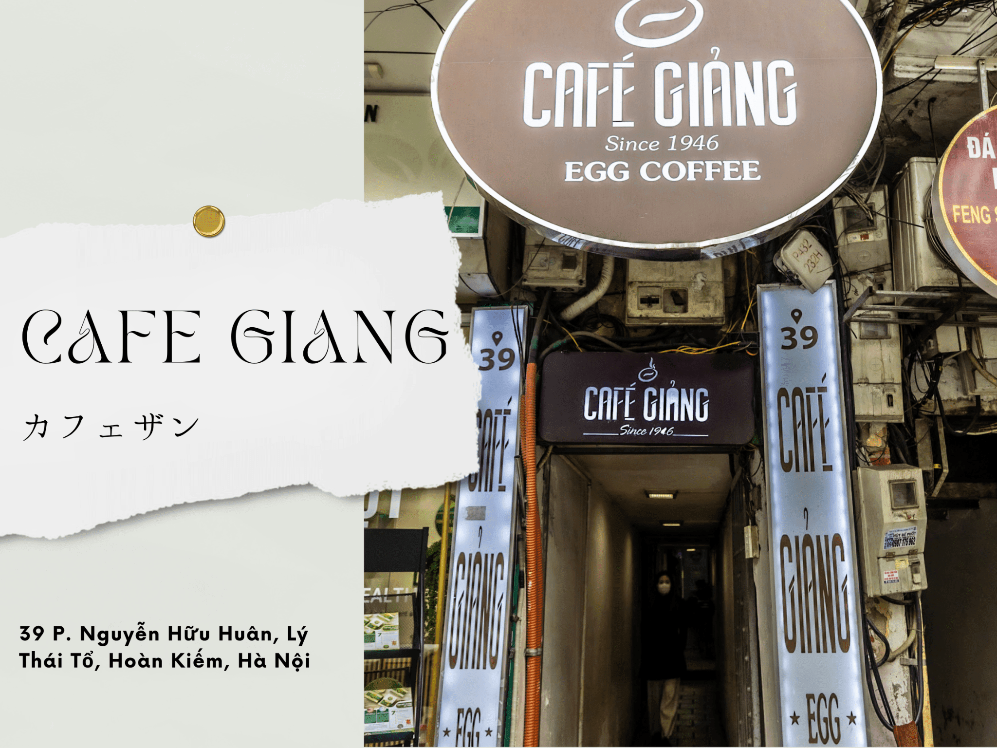 ベトナムコーヒーの代表格、エッグコーヒーの発祥のお店。お店の名前にもなっているGiang(ザン)さんがホテルのバーテンダーをやめて独立してエッグコーヒーを開発・提供したのが始まりとされるまさにピンポイントの発祥の地。甘いエッグカスタードが特徴のエッグコーヒーですが、本店は甘さ控えめで若干コーヒーの苦味とえぐみが強いのが特徴となっています。