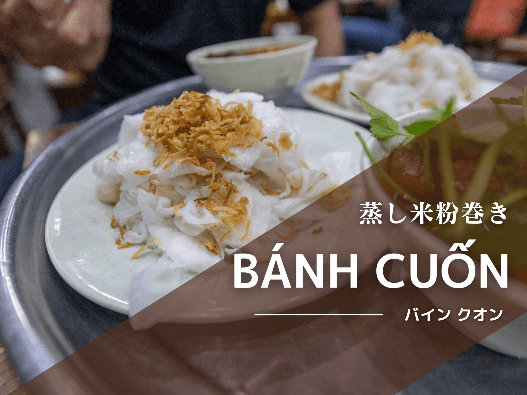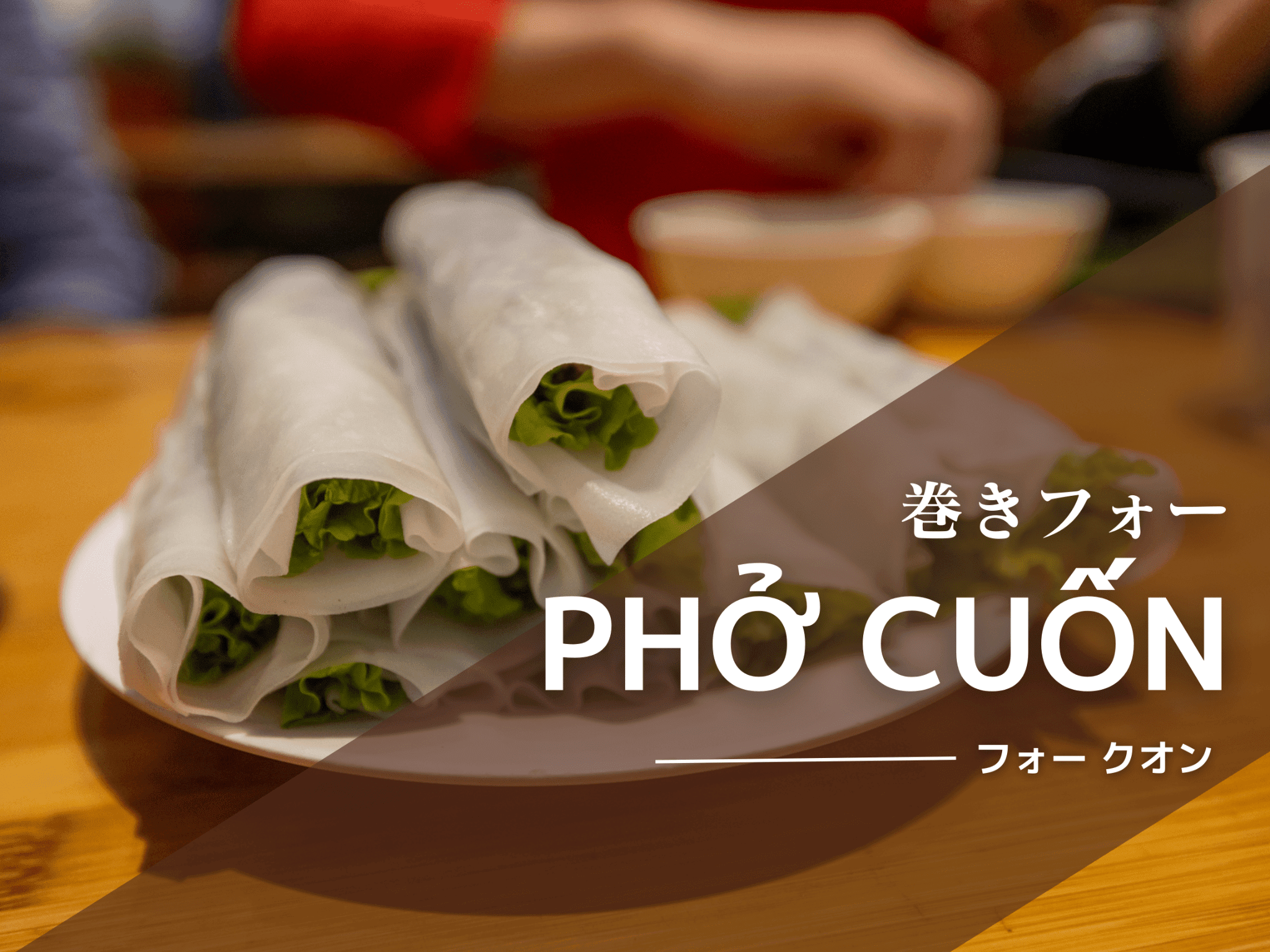 ベトナム北部発のバインクオンはベトナム人に朝食からランチ、ディナーまで人気のある北部グルメ。オーダーが入ったら米粉の液体をクレープ器に広げて素早く蒸して、その上にひき肉などの具材を包んで巻いた人気グルメです。ブンチャー同様、BBQポークのつけ汁と一緒にいただくのが一般的です。