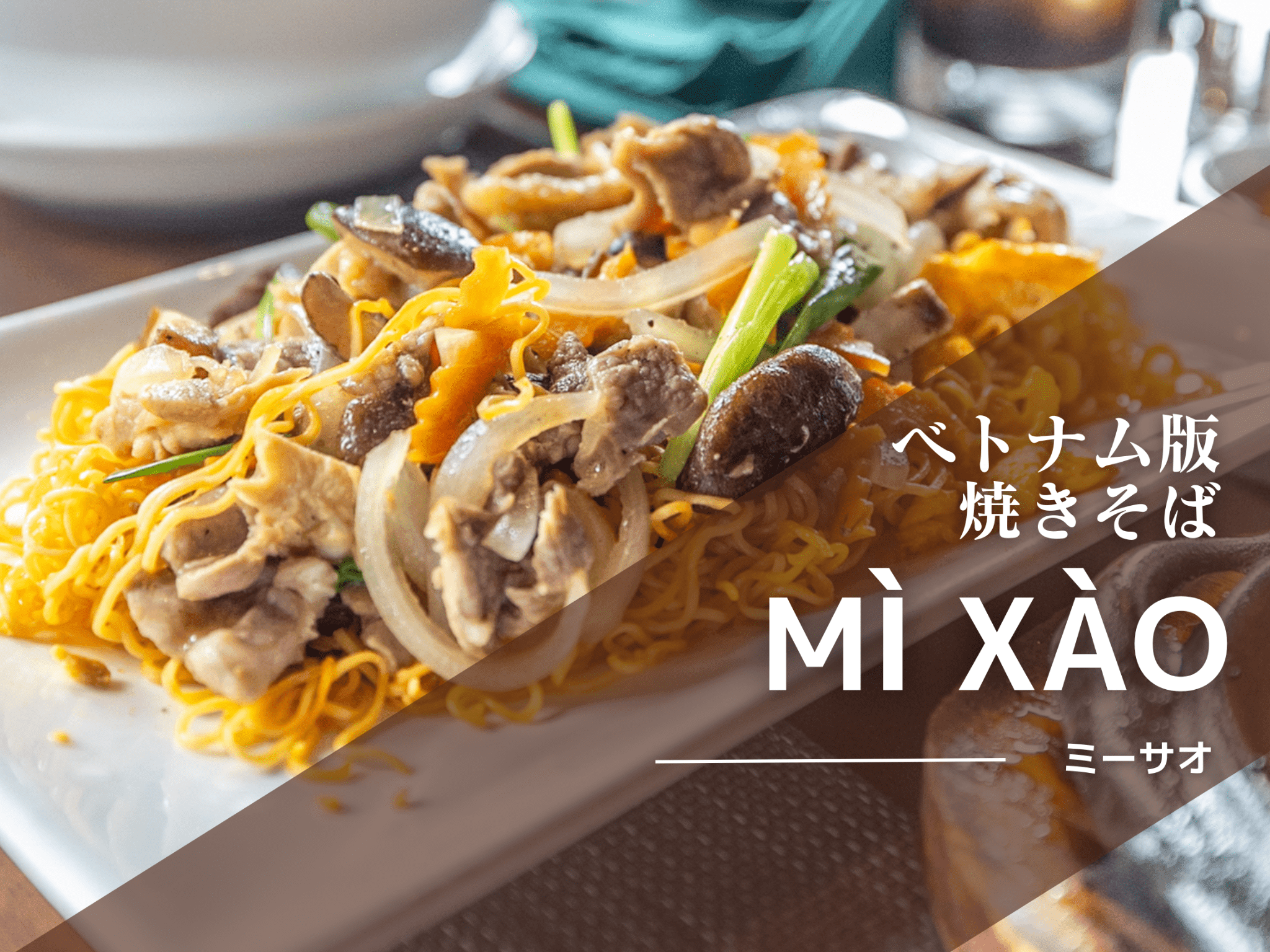 ミーサオは日本でいうと焼きそば。米粉ではなく小麦粉麺のMiを使った炒め麺なのでまさに焼きそばそのものです。ミーはインスタント麺として広くベトナムに普及しており、ミーサオもインスタント麺を戻して炒めるものが一般的ですが、野菜や牛肉、ビーチエリアではシーフードと一緒に具沢山で炒めるので満足感が得られる一品といえます。