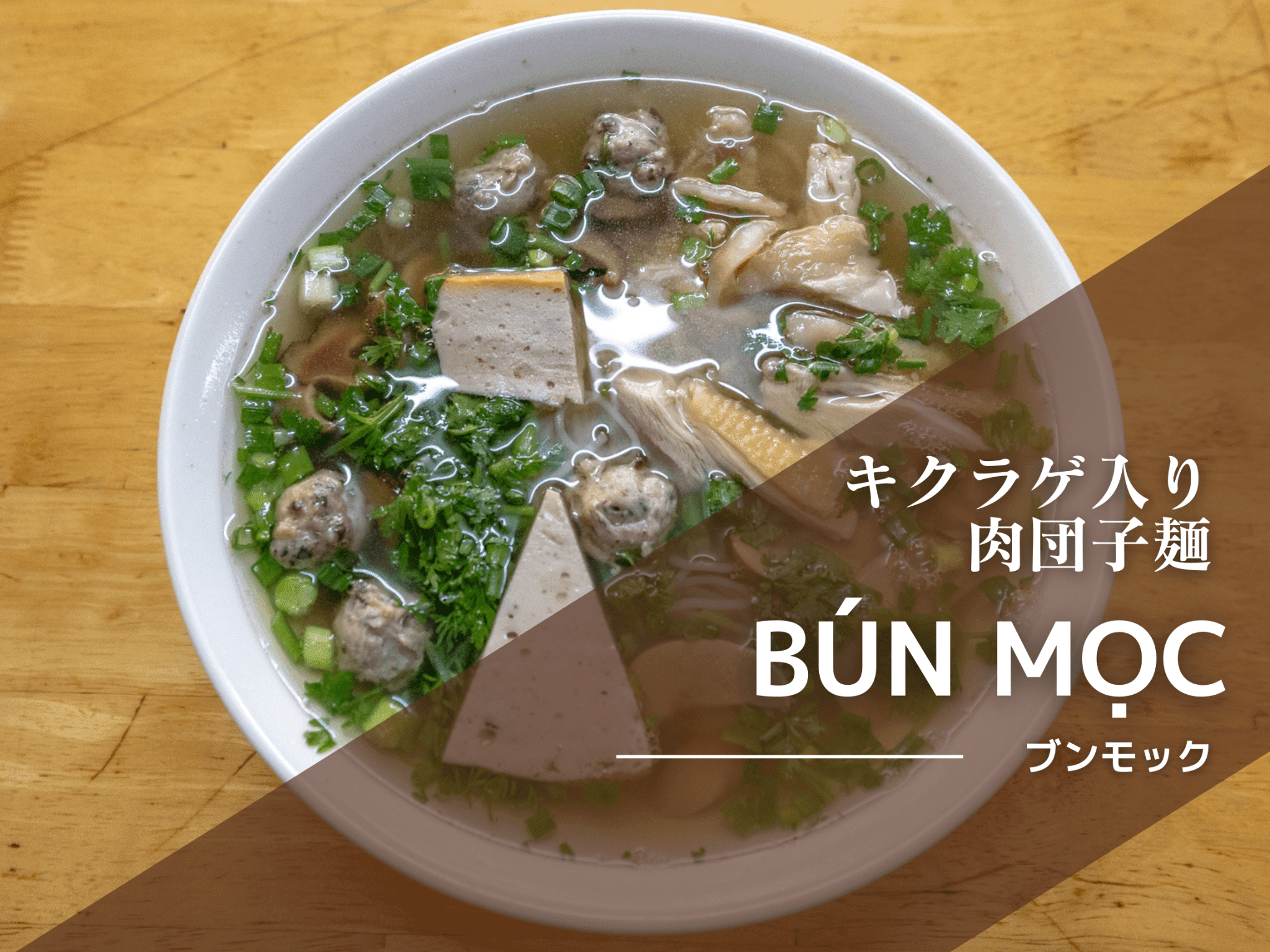 ハノイ発祥のきくらげ入り肉団子麺。さっぱり優しいスープにブンと肉団子をはじめとするさまざまな具材が入っており、ベトナム人の朝ごはんの定番の一つとなっています。