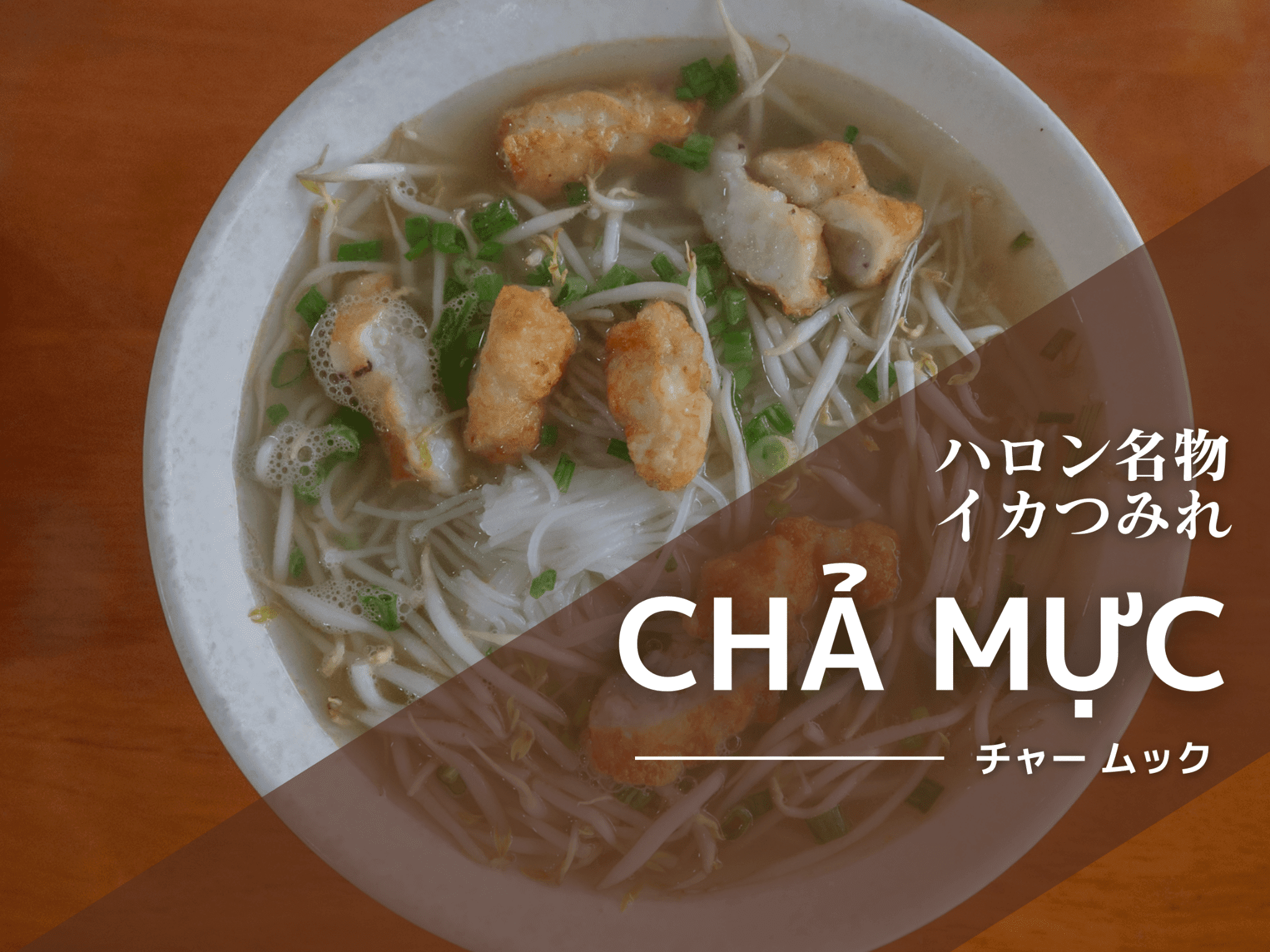 ベトナム観光の聖地、ハロン湾は観光のほかにシーフードの養殖などの漁業も盛んで、ハロンの市街地にはシーフードレストランが多く並びます。その中でもイカの薩摩揚げ風のつみれはハロンの名物。ブンを使った汁物などの具材として代表的に楽しまれるご当地グルメです。