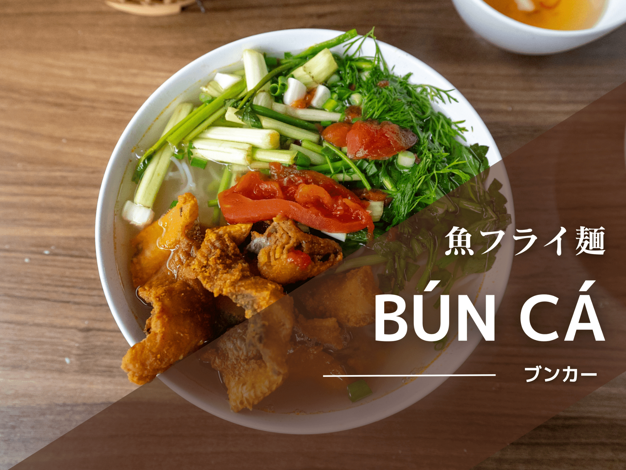 ブンカーはその名のとおりブン+魚。優しい味のスープは野菜がたくさん入って、その上にカリカリの魚フライをのせるのが一般的です。旅行のグルメとしてマストには入ってきませんが、ハノイの街中で多く見かけて食べやすいのでベトナム人を中心に人気があり、朝食やランチ、間食としても楽しめます。